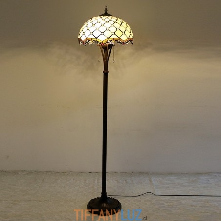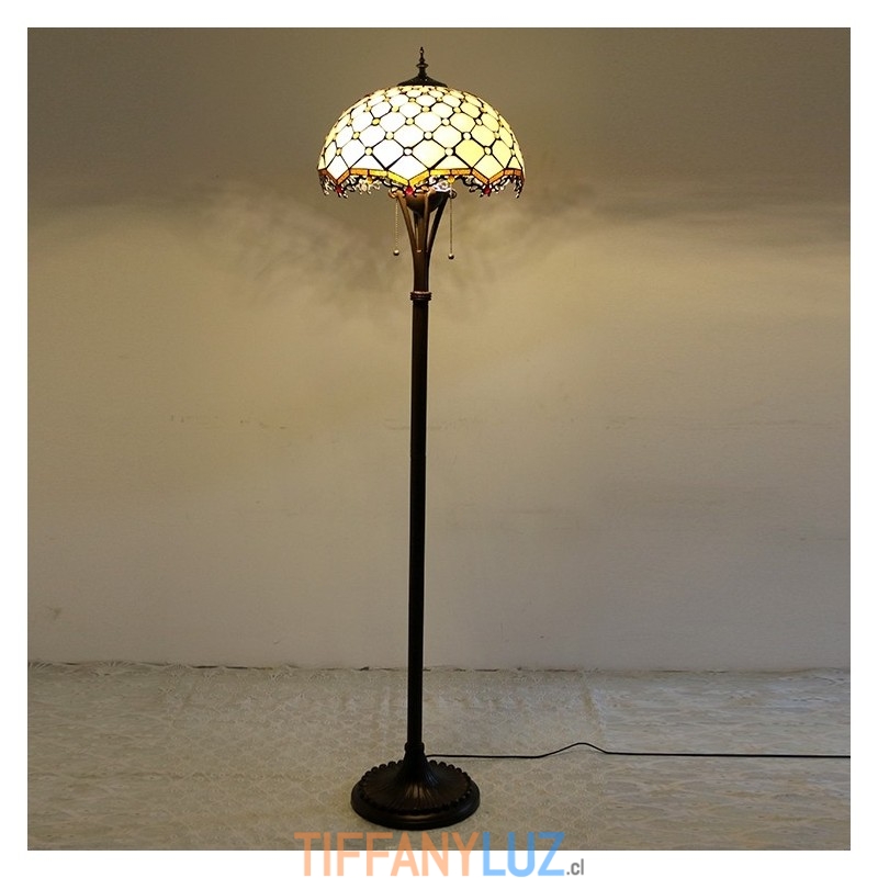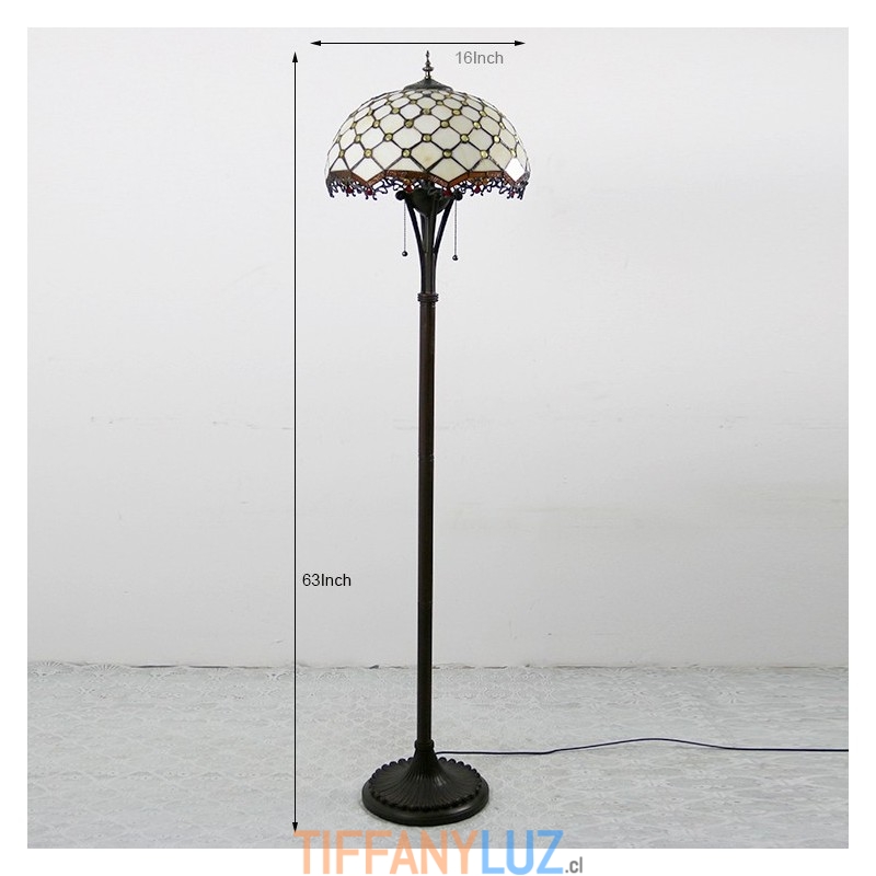 Lámpara de pie de vidrio de colores estilo Tiffany con pantalla de 16 pulgadas de ancho y base de metal hecha a mano