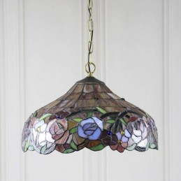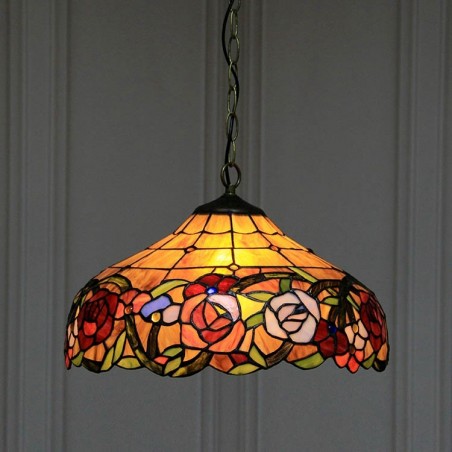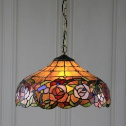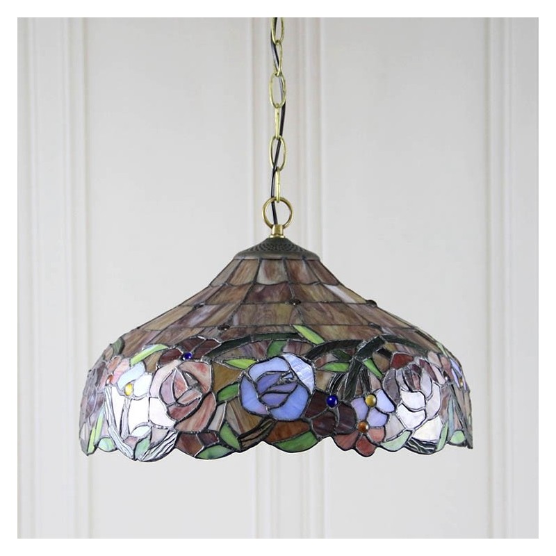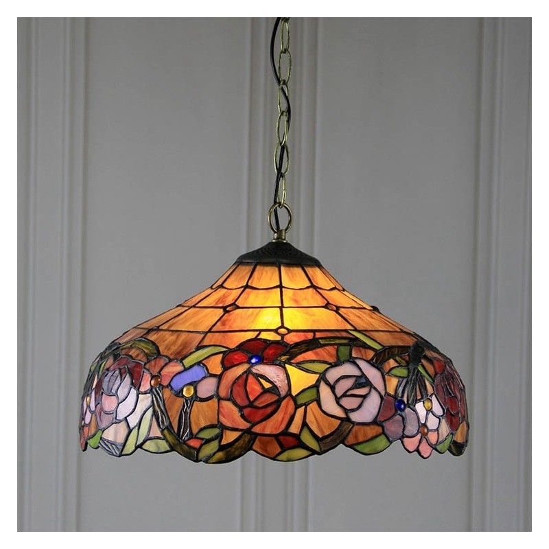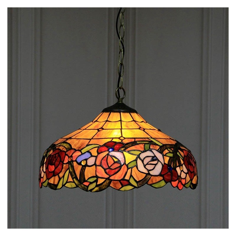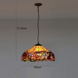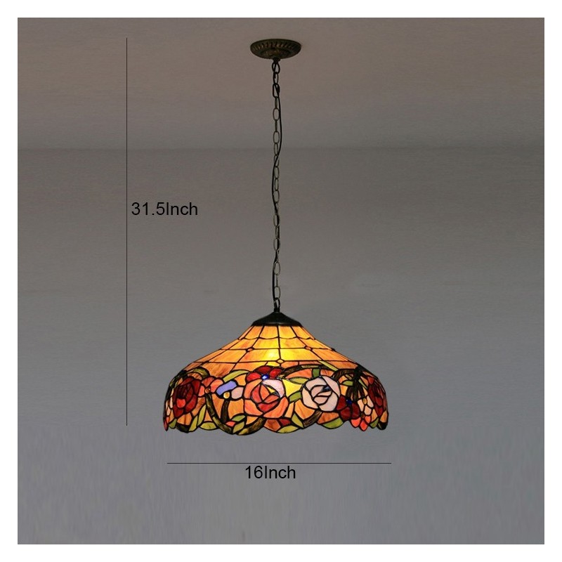 Lámpara colgante estilo Tiffany de 16 pulgadas con diseño de flor de rosa y vitrales con 2 luces