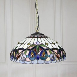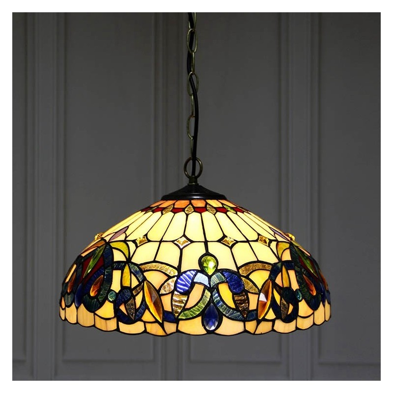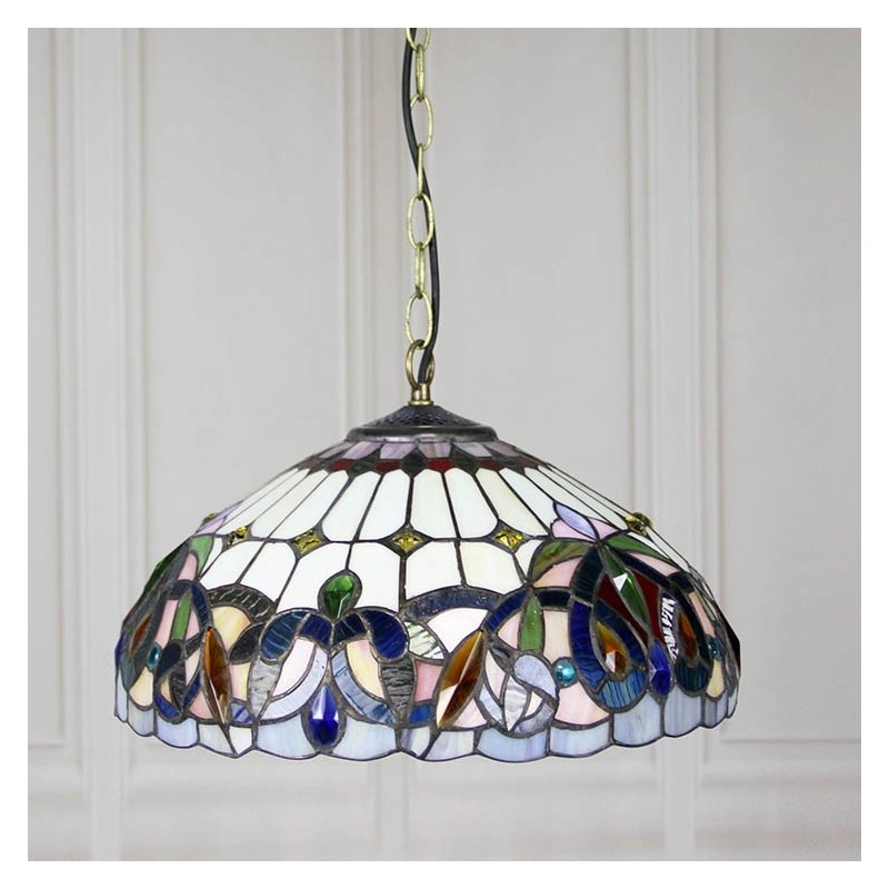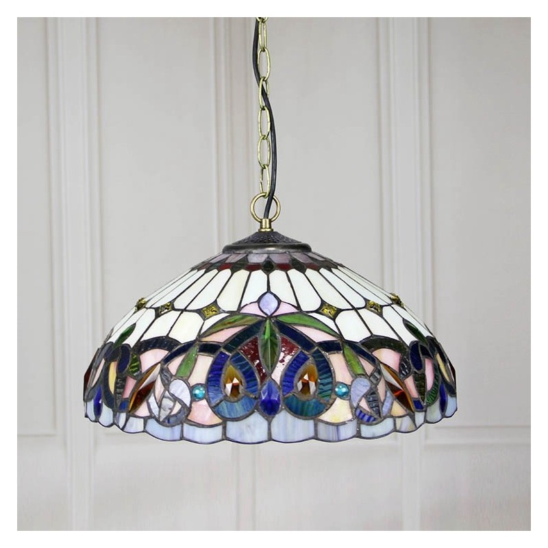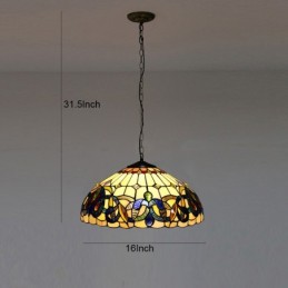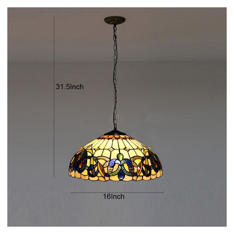 Lámpara colgante estilo Tiffany de 16 pulgadas, lámpara colgante de vidrio de colores única con 2 luces