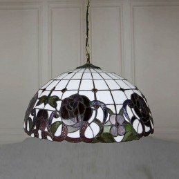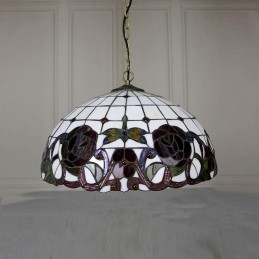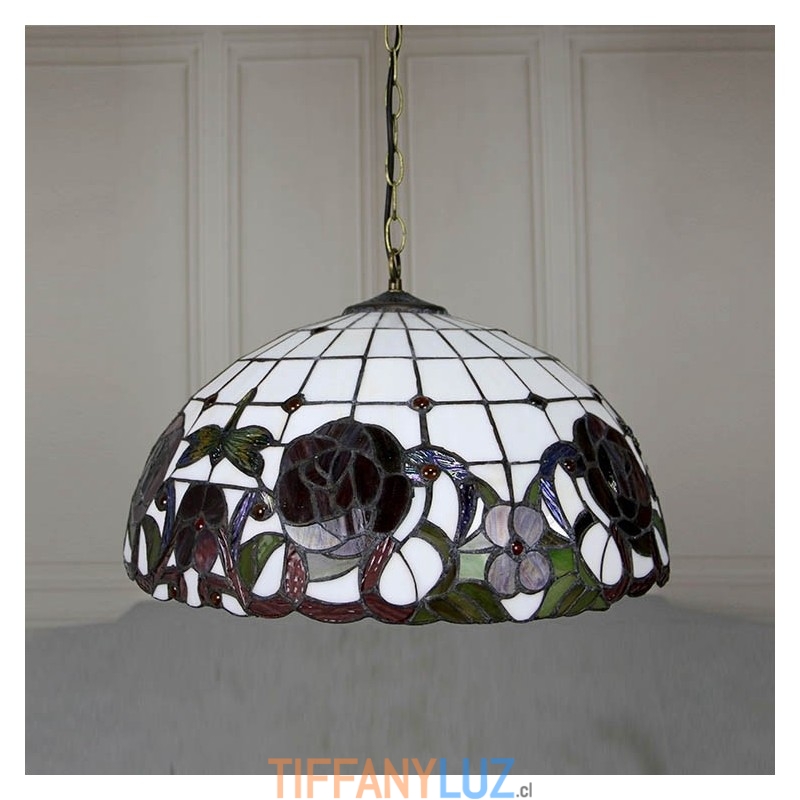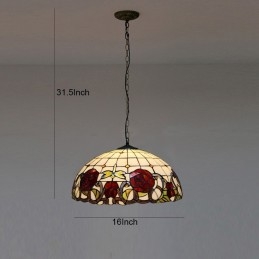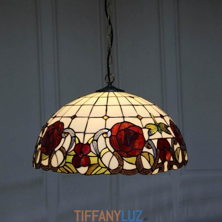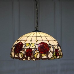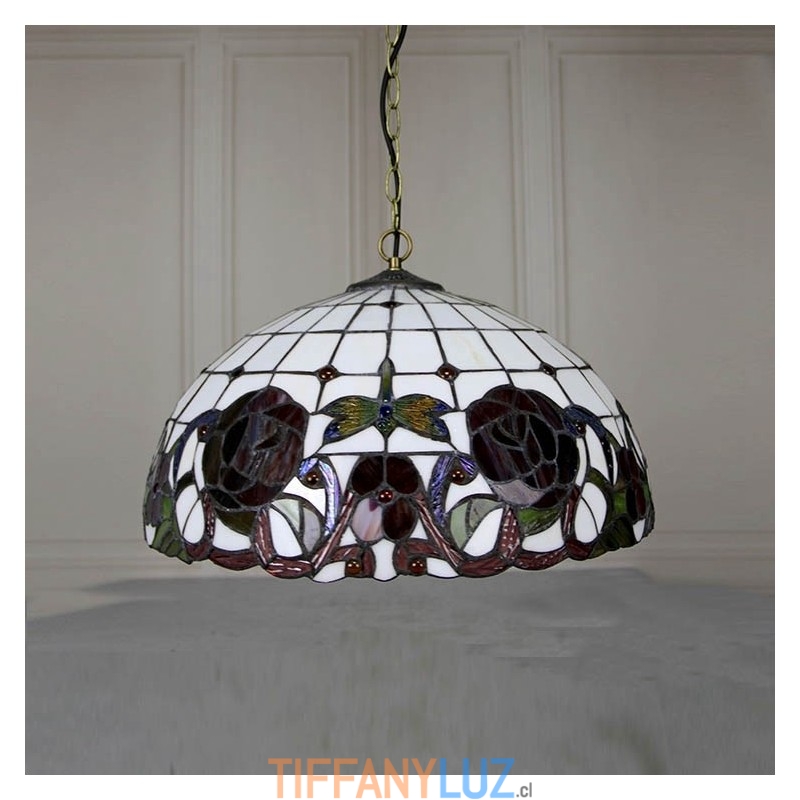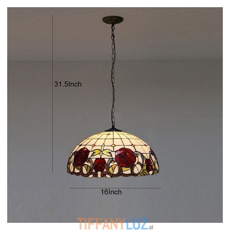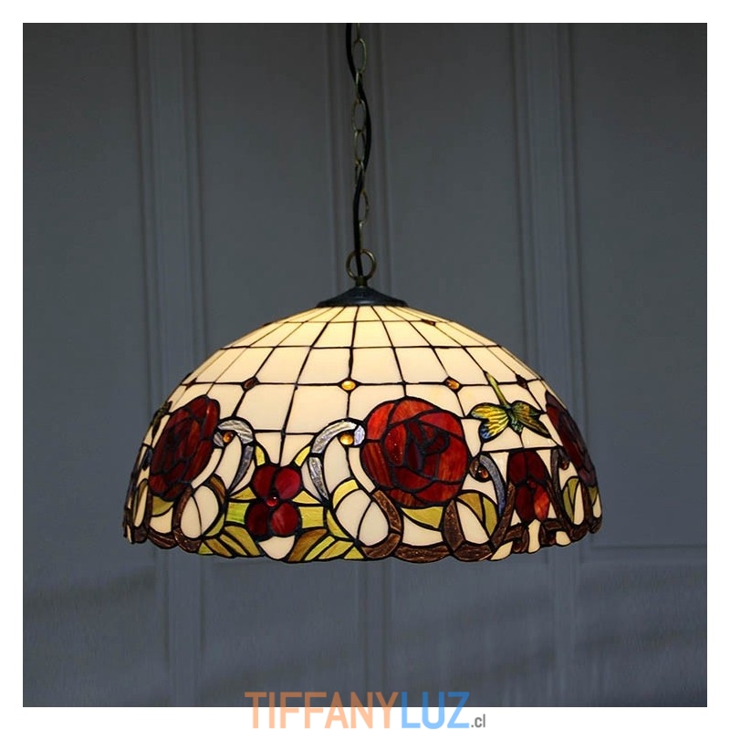 Lámpara colgante estilo Tiffany de 16 pulgadas con diseño de flores de rosas y vitrales