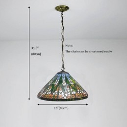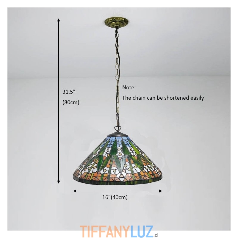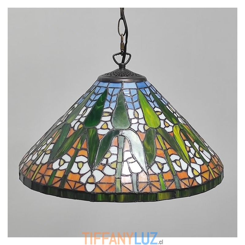 Lámpara colgante de vidrio de colores estilo Tiffany de 16 pulgadas con patrón de bambú, luz de techo de vidrio de colores