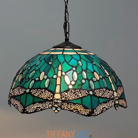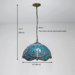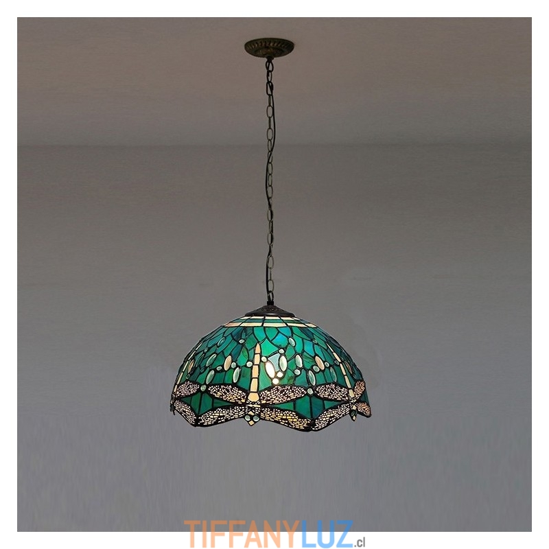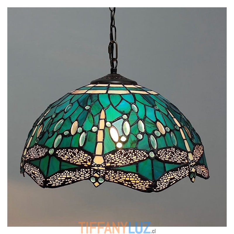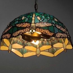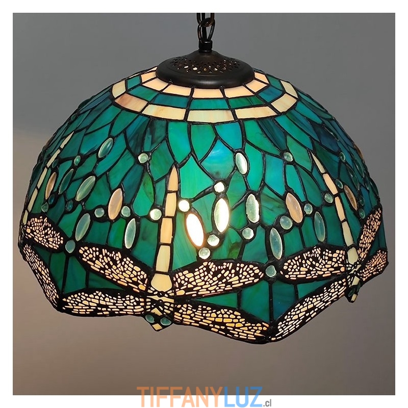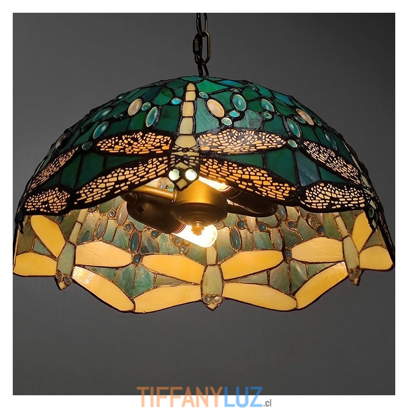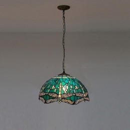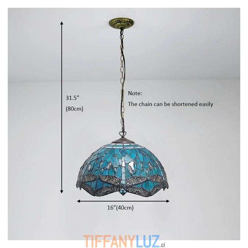 Lámpara colgante de vidrio de colores estilo Tiffany de 16 pulgadas Lámpara de techo de vidrio de colores con forma de libélula