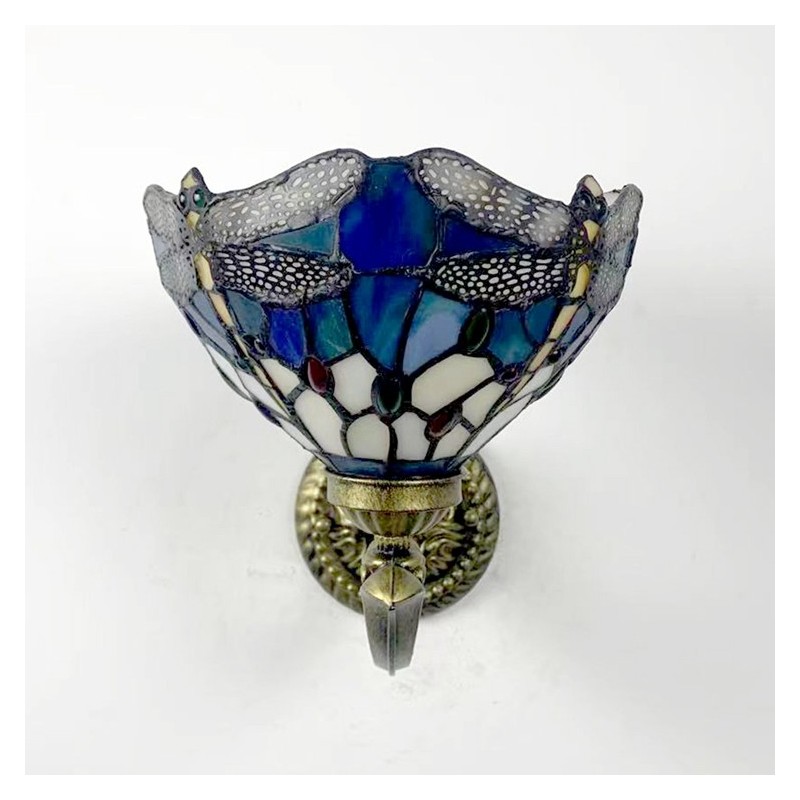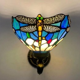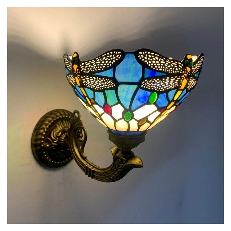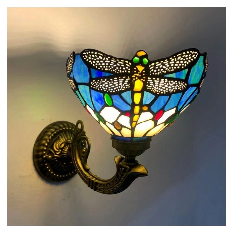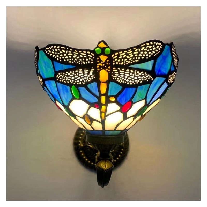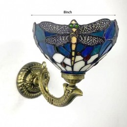 Lámpara de pared estilo Tiffany de 8 pulgadas con forma de libélula y vitrales, luces de pared hechas a mano, luz de espejo empotrada