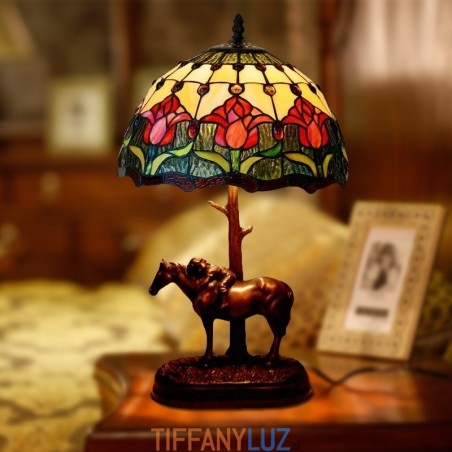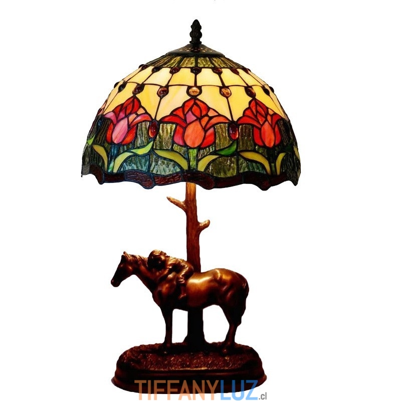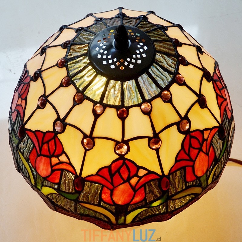 Lámpara de mesa retro Tiffany de cristal tintado con tulipán rojo de 30 cm