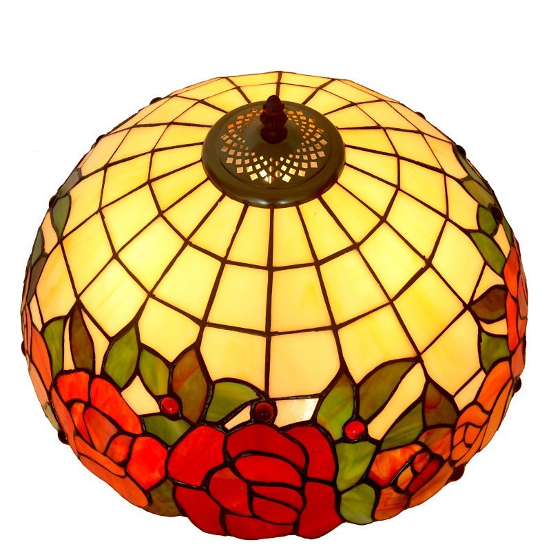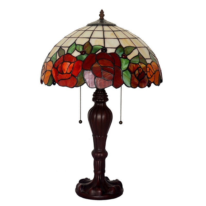 Lámpara de mesa Tiffany de cristal coloreado con forma de rosa roja de 40 cm