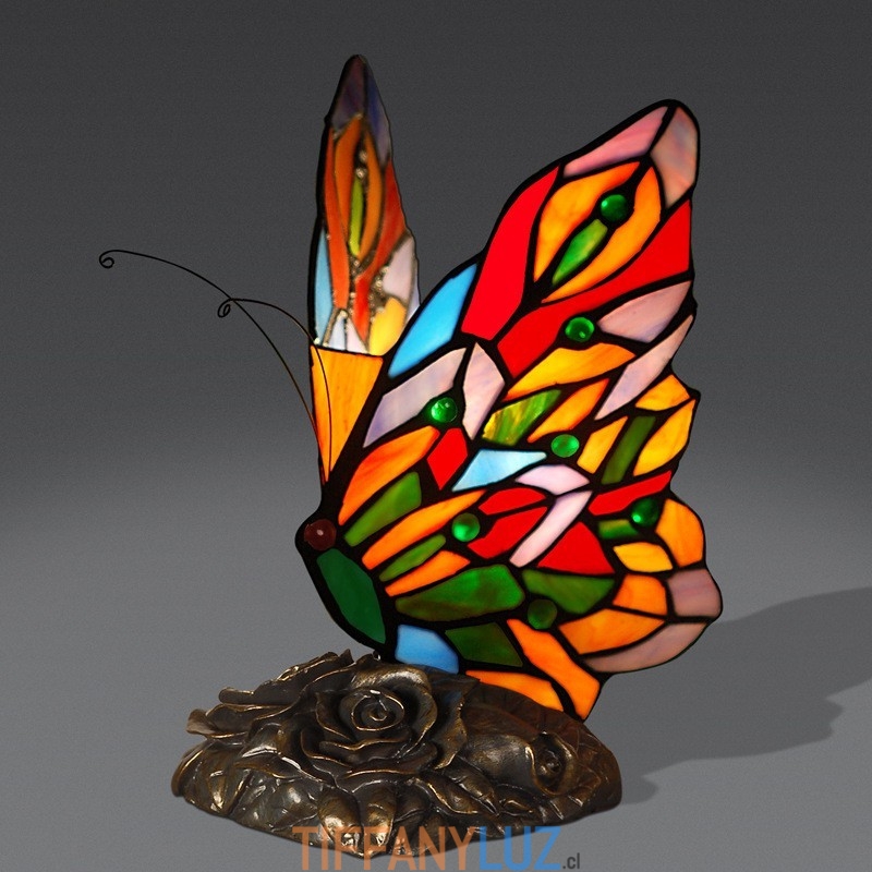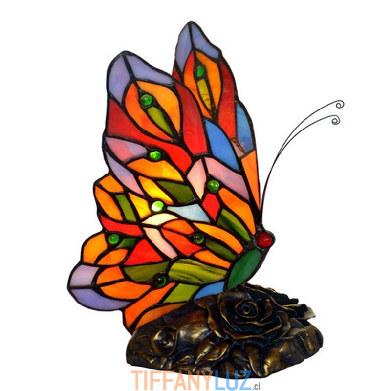 Lámpara de mesa Tiffany de cristal de colores con forma de mariposa de 12,5 cm