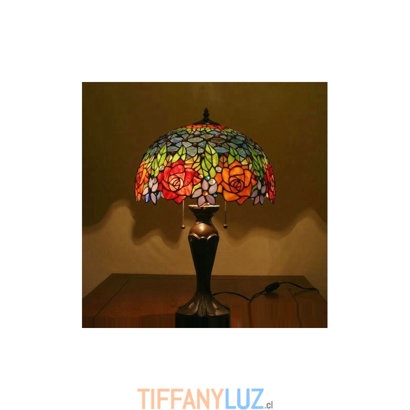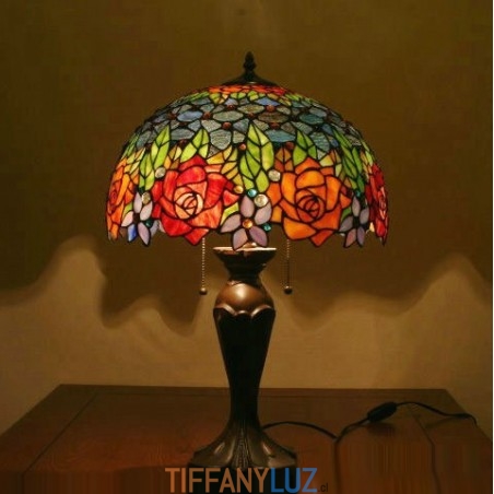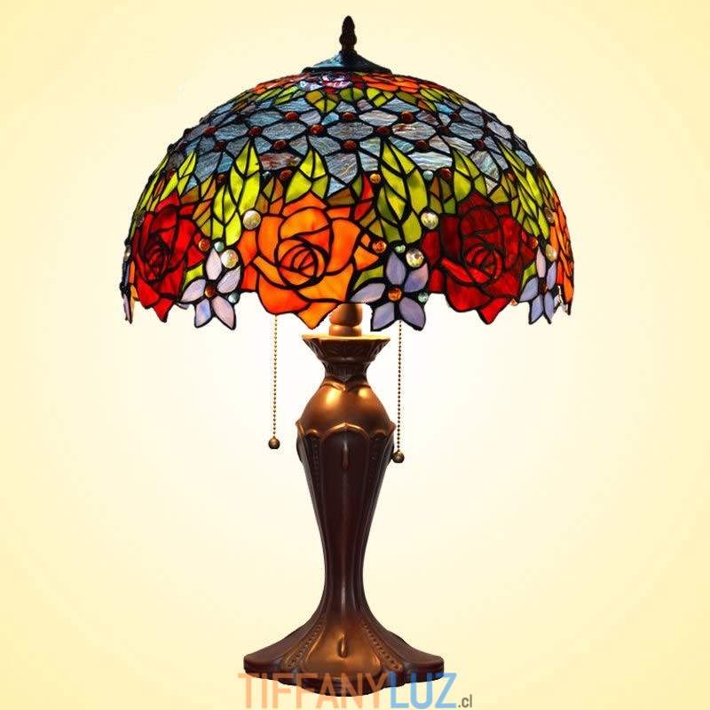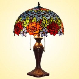 Lámpara de mesa de cristal de color Tiffany en tono rosa de 40 cm