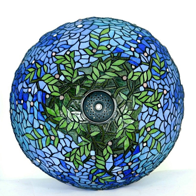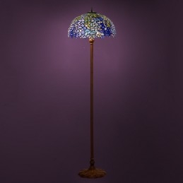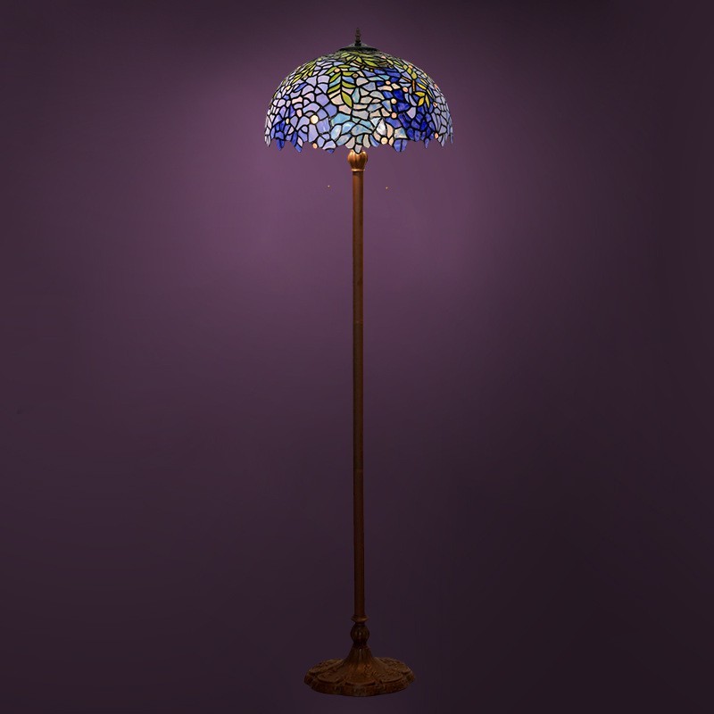 Lámpara de pie de cristal de color Tiffany con diseño de glicina azul de 40 cm