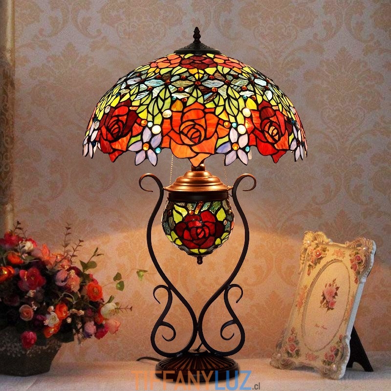 Lámpara de mesa de cristal de color Tiffany en tono rosa de 45 cm