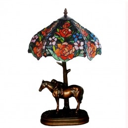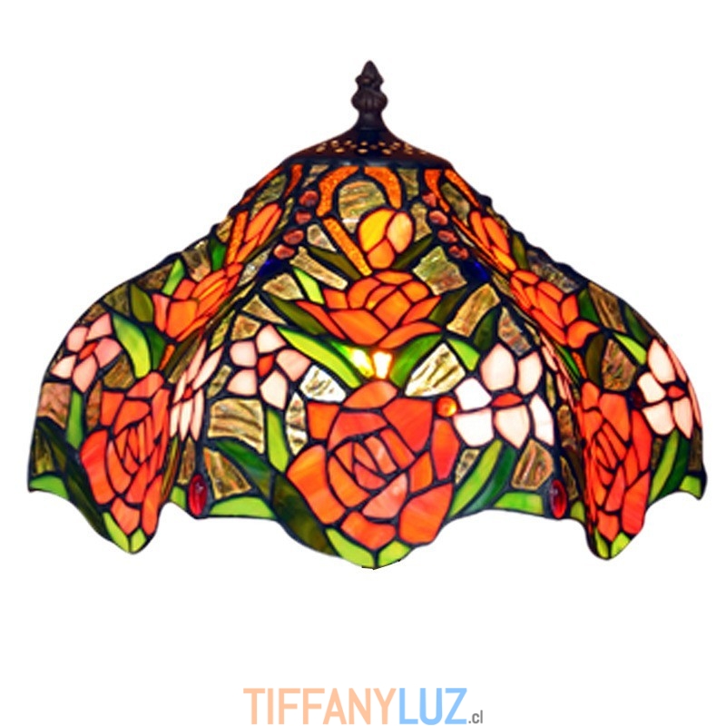 Lámpara de mesa de cristal de color Tiffany retro rosa de 30 cm