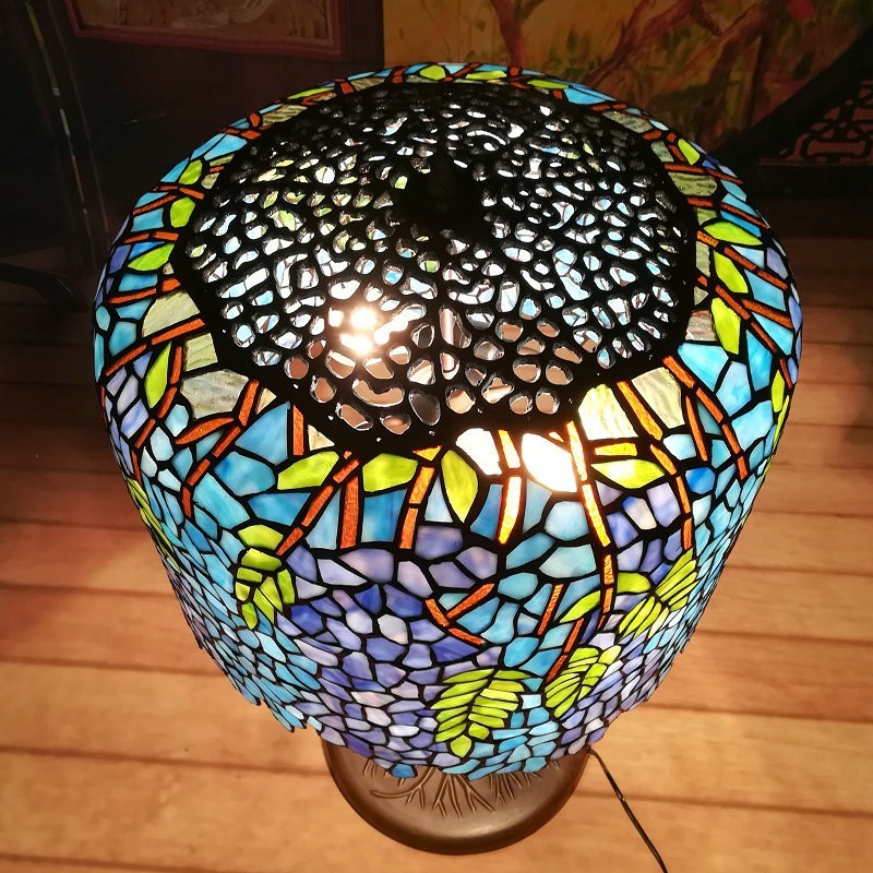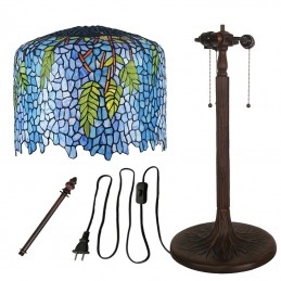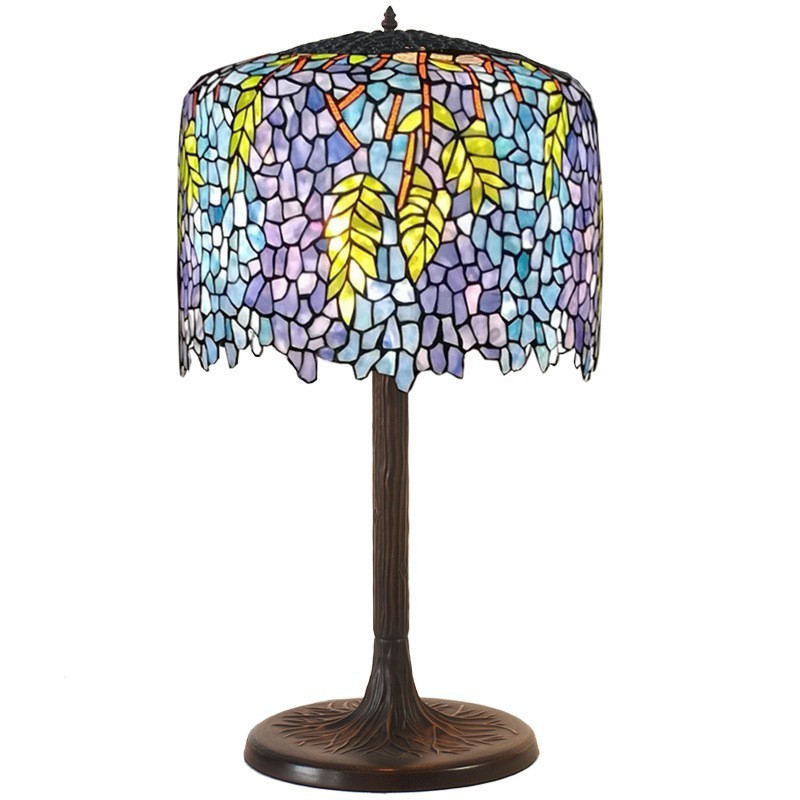 Lámpara de mesa Tiffany de cristal de colores con diseño de glicina azul de 45 cm