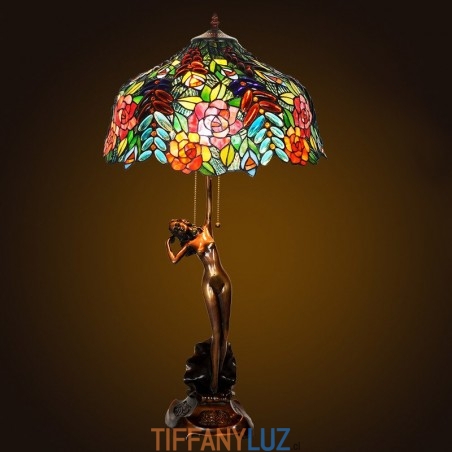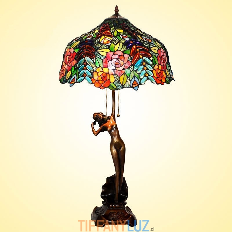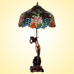 Lámpara de mesa de cristal de color Tiffany en tono rosa de 43 cm