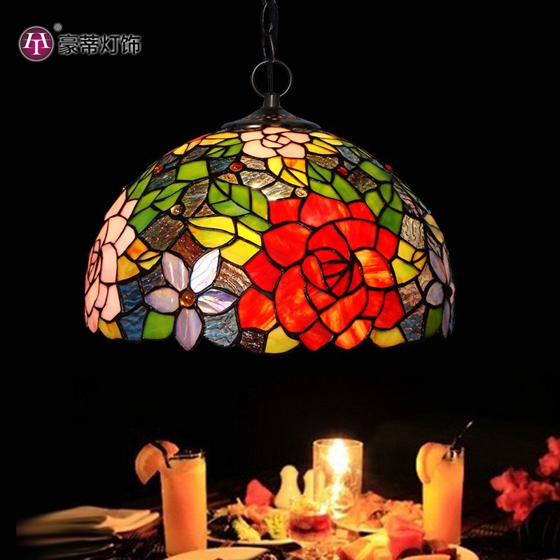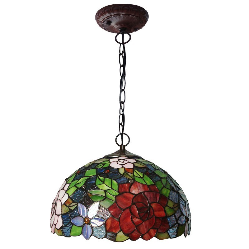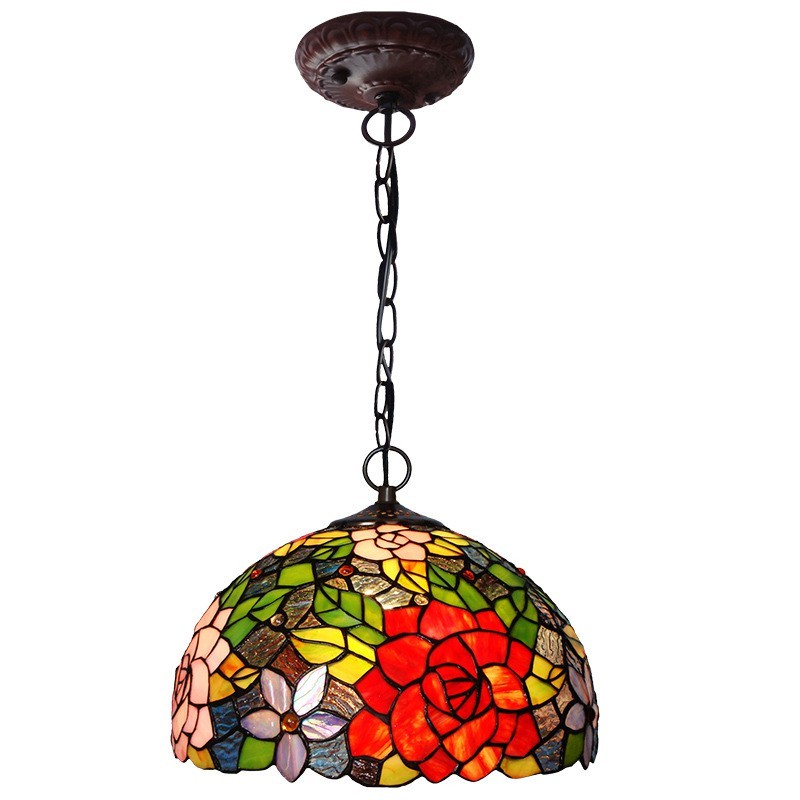 Lámpara colgante de cristal de color Tiffany en tono rosa de 30 cm