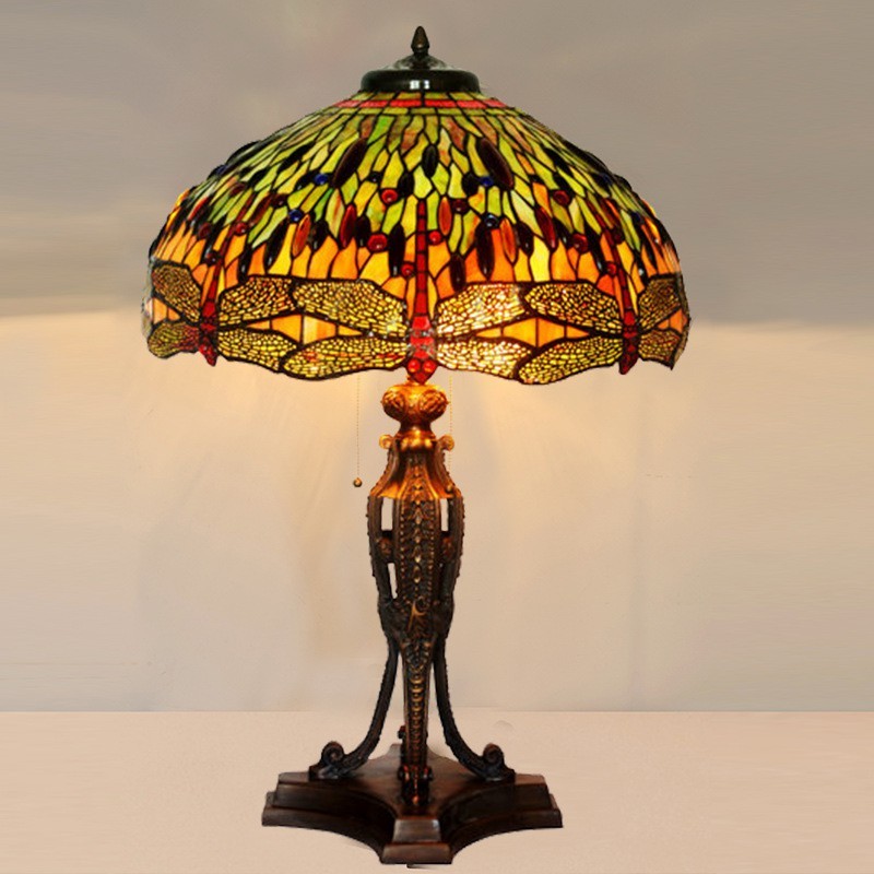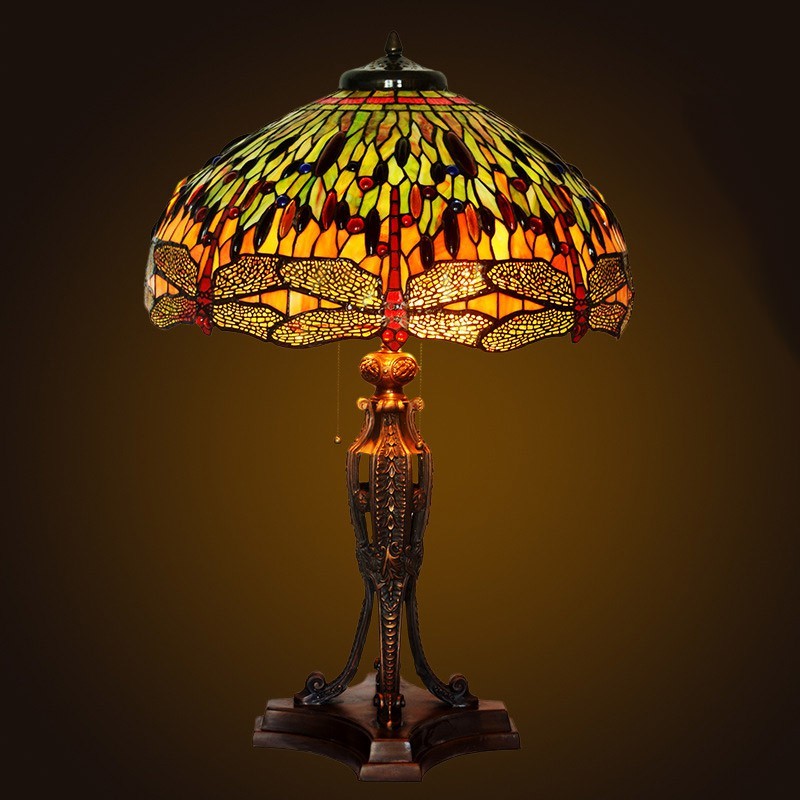 Lámpara de mesa de cristal de color Tiffany con forma de libélula de 50 cm