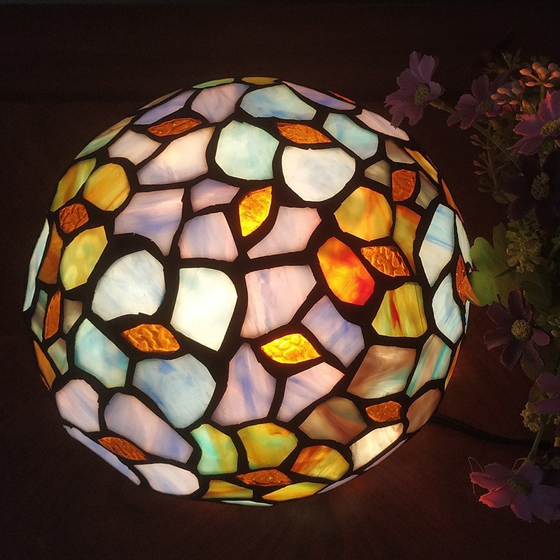 Lámpara de mesa de cristal de colores Tiffany