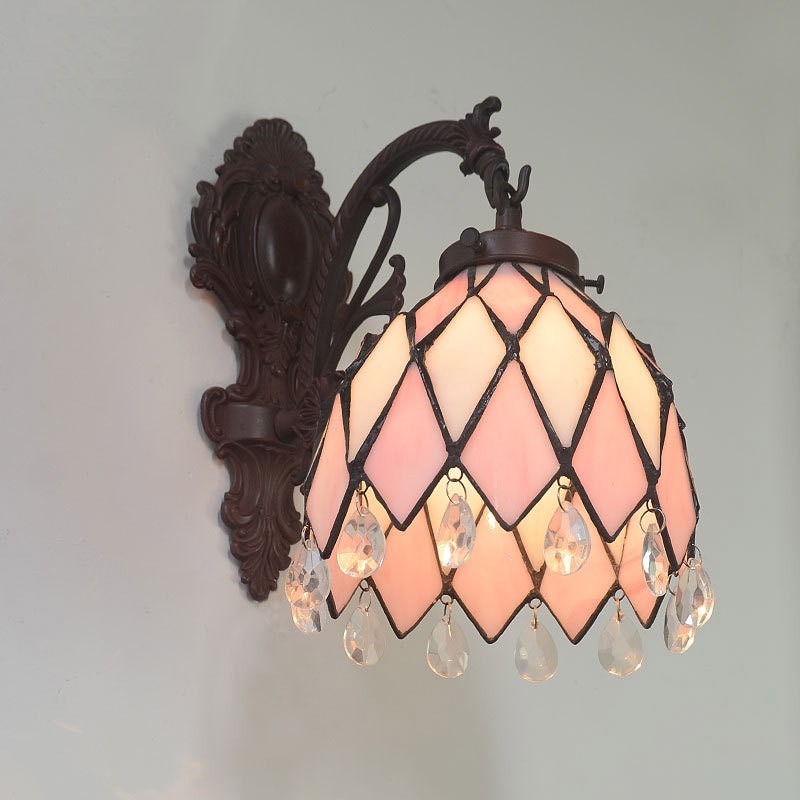 Aplique de pared de cristal de color Tiffany rural de 15 cm