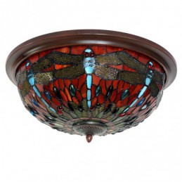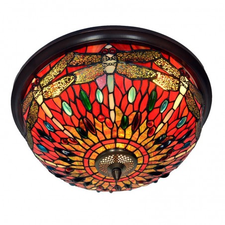 Plafón de cristal de color Tiffany con forma de libélula roja redonda de 40 cm