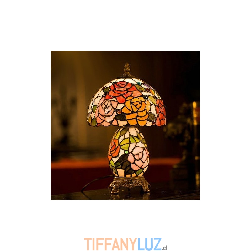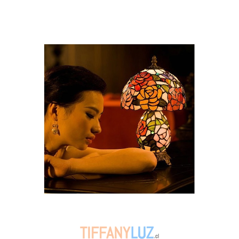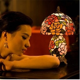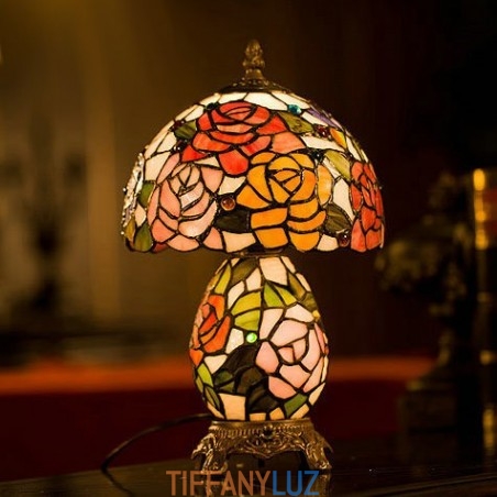 Lámpara de mesa de cristal de color Tiffany en tono rosa de 20 cm