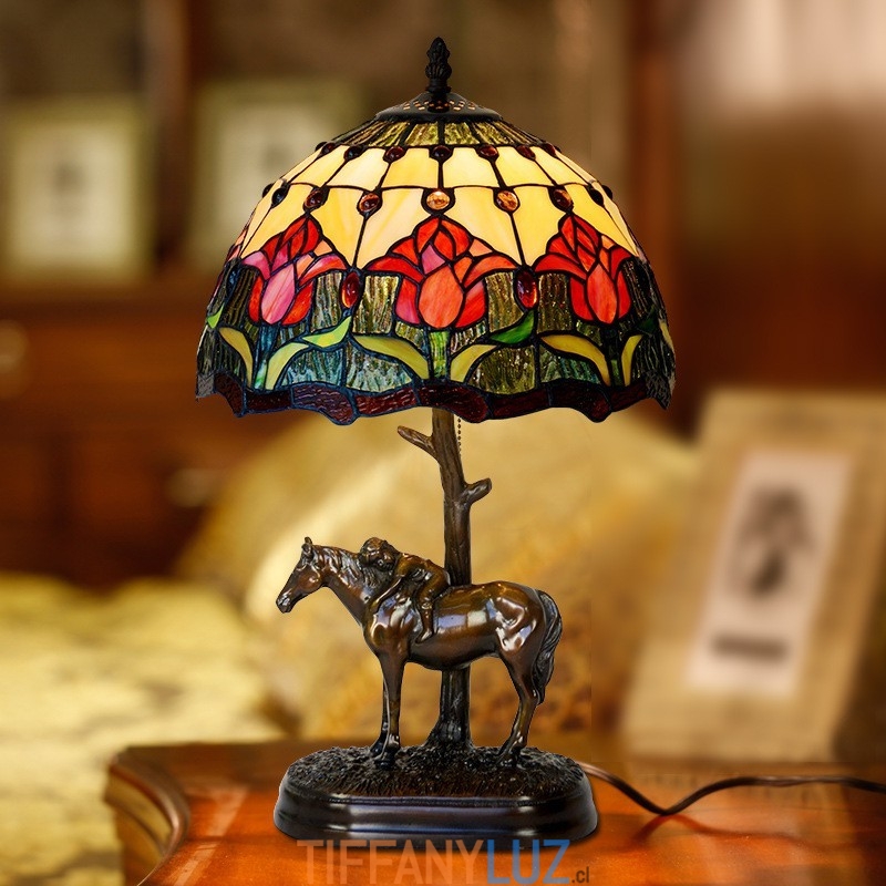 Lámpara de mesa de cristal de color Tiffany retro de 30 cm