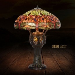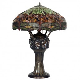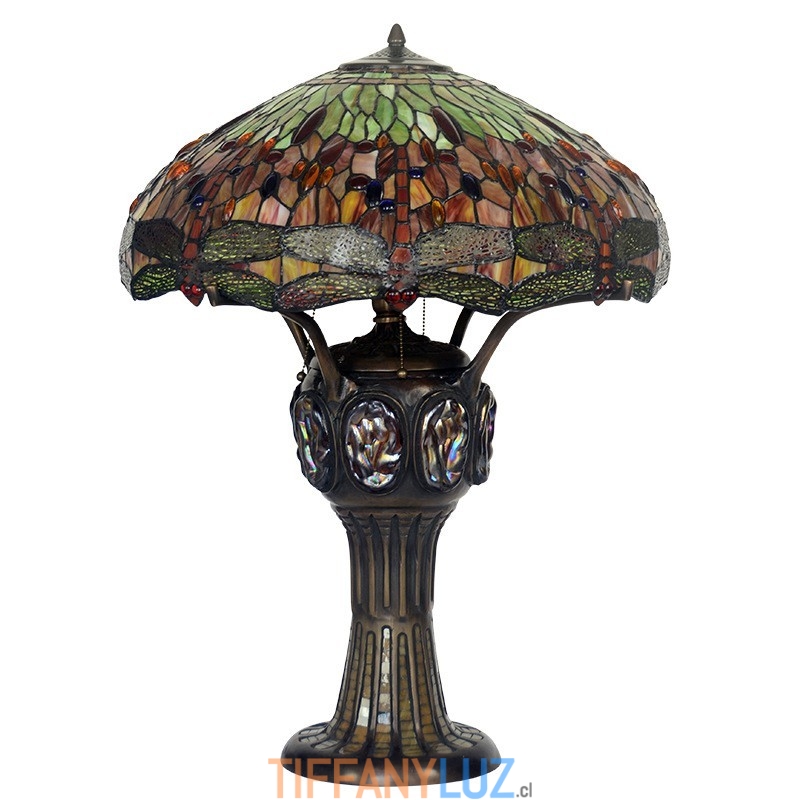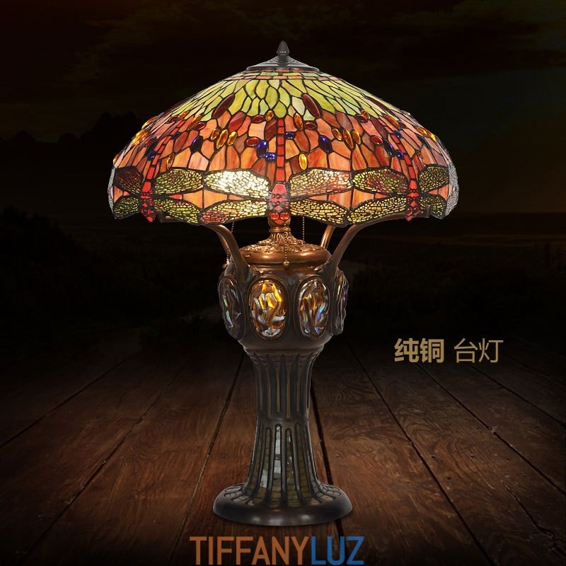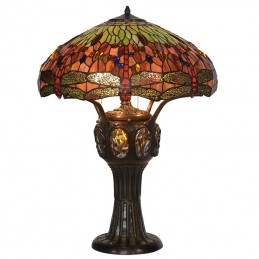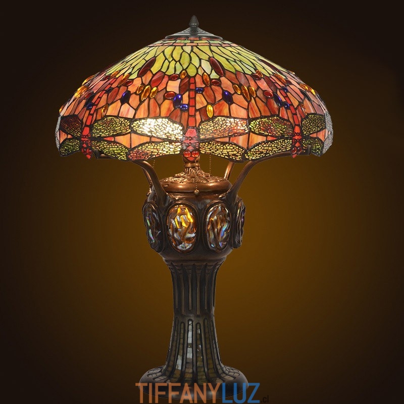 Lámpara de mesa Tiffany de cristal de colores con forma de libélula roja de 55 cm