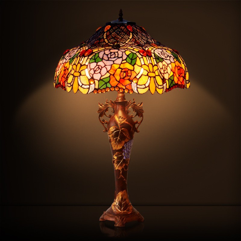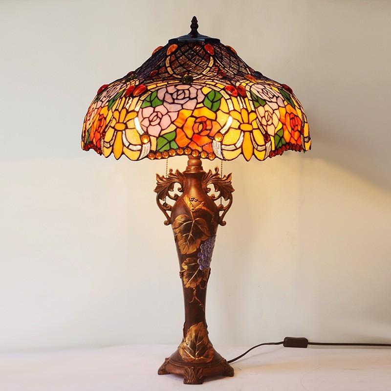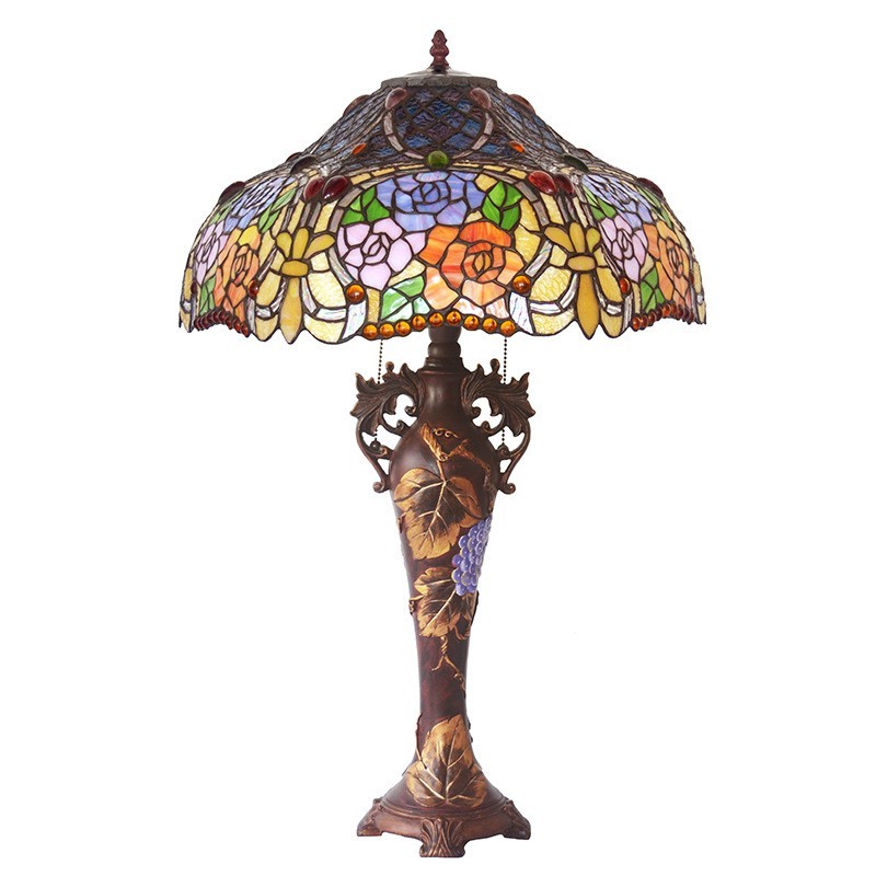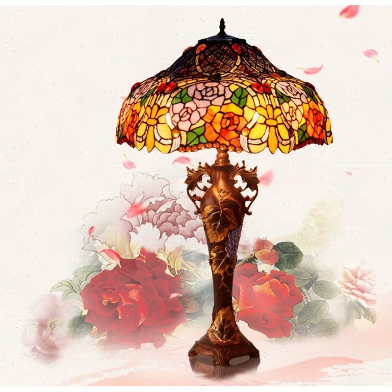 Lámpara de mesa de cristal de color Tiffany en tono rosa de 45 cm