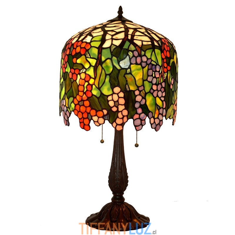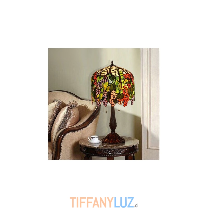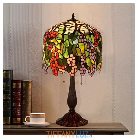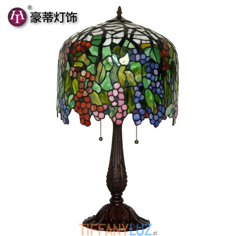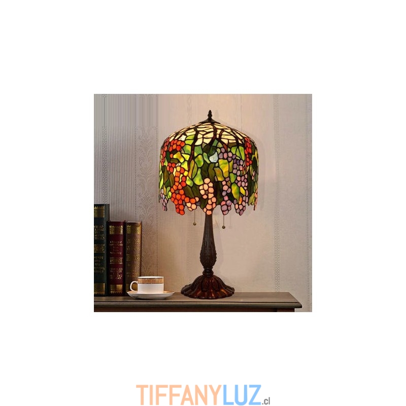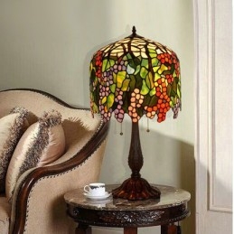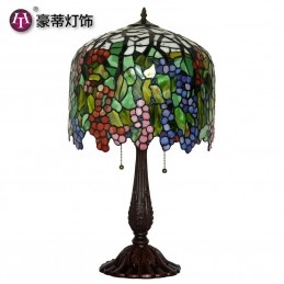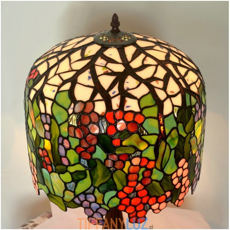 Lámpara de mesa redonda retro con vitrales de Tiffany en forma de uva