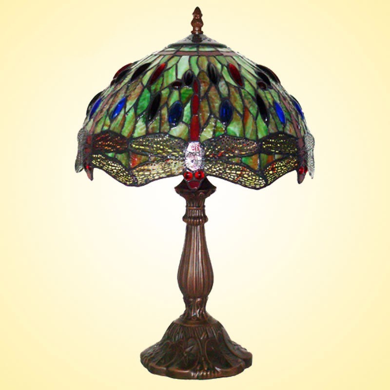 Lámpara de mesa de cristal de color Tiffany retro de 30 cm