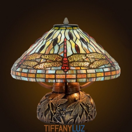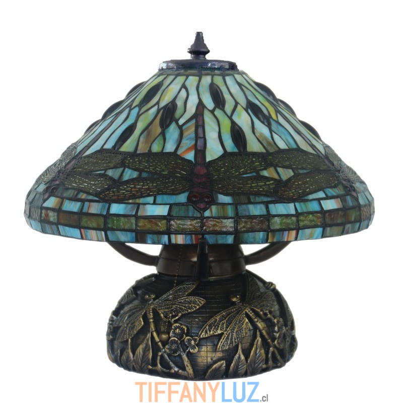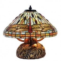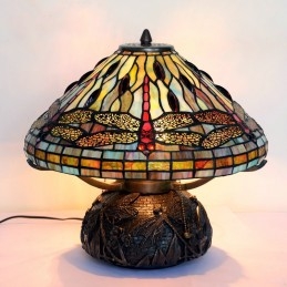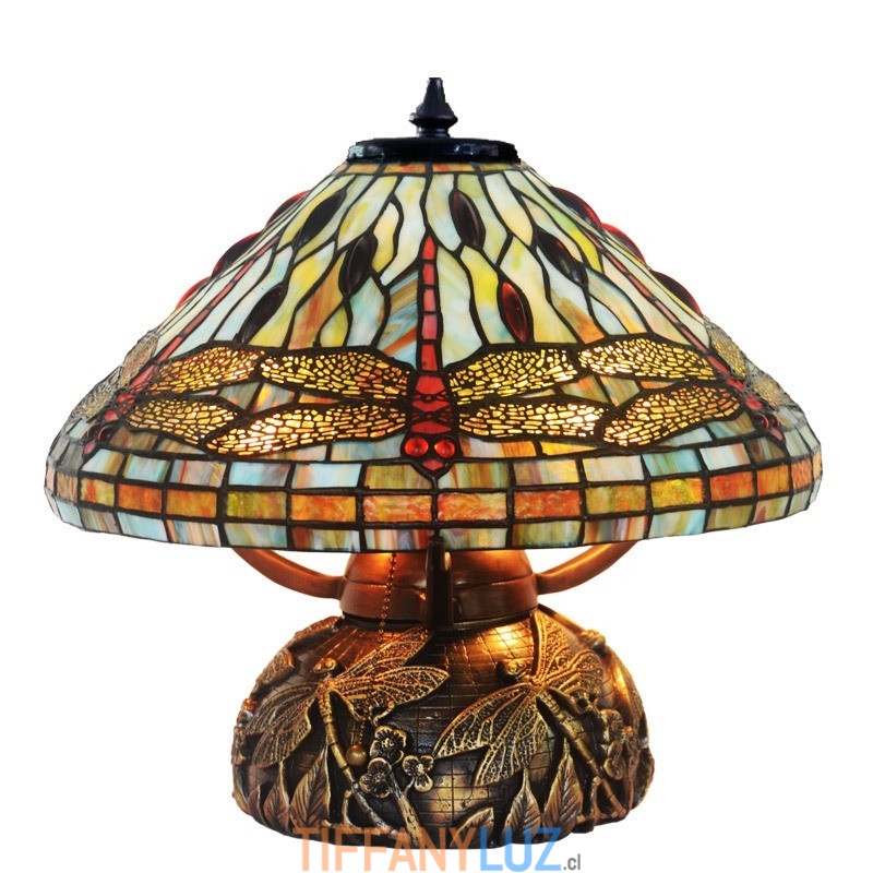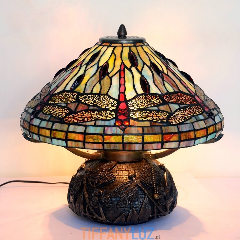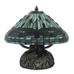 Lámpara de mesa de cristal de colores Tiffany con forma de libélula