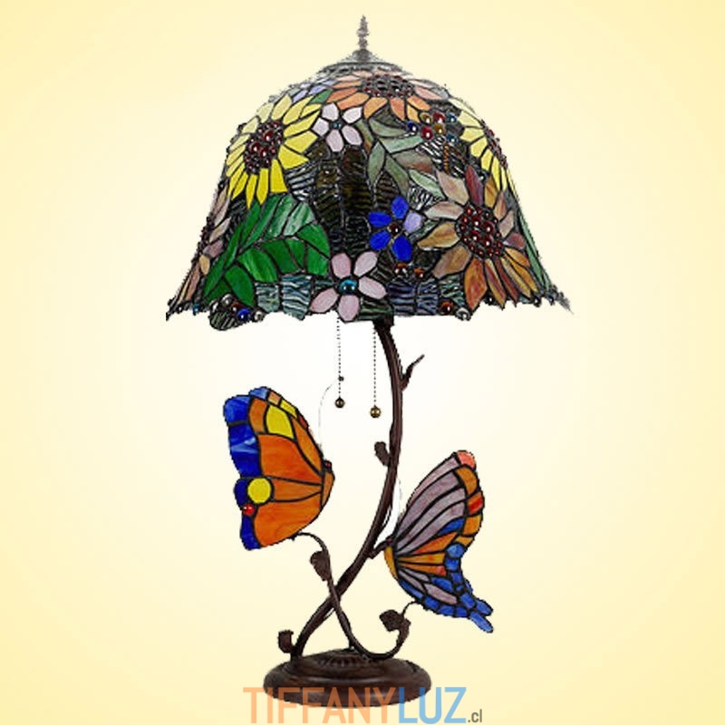 Lámpara de mesa Tiffany de cristal de colores con forma de mariposa y girasol de estilo rural de 40 cm