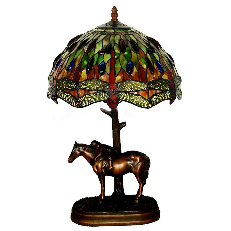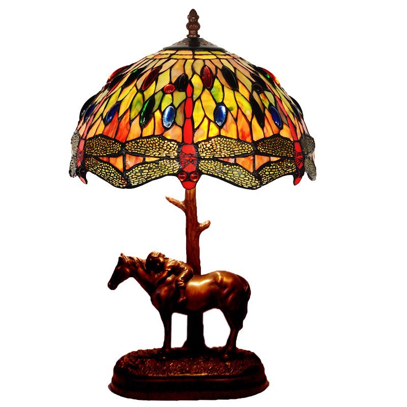 Lámpara de mesa de cristal de color Tiffany con forma de libélula rural de 30 cm