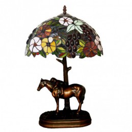 Lámpara de mesa de cristal de color Tiffany con diseño rural de caballo de 30 cm