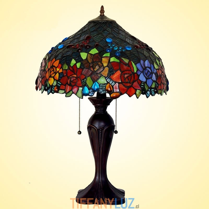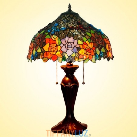Lámpara de mesa Tiffany de cristal de colores con forma de mariposa y rosa de 43 cm