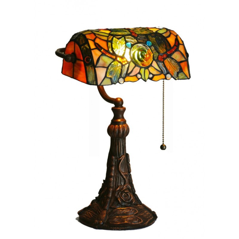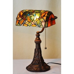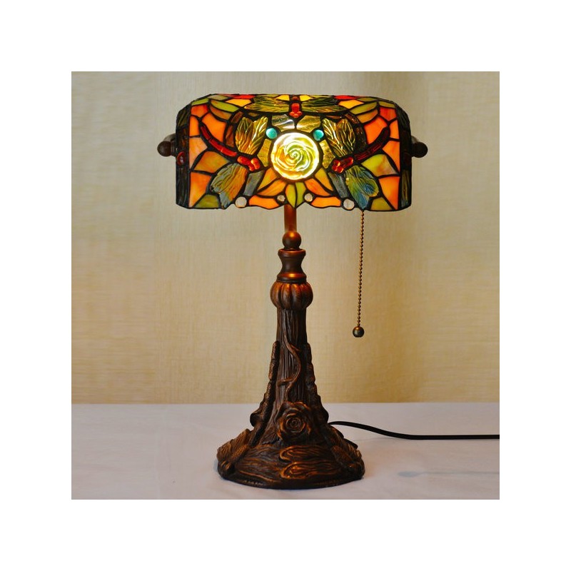 Lámpara de mesa de cristal de color Tiffany con forma de rosa y libélula de 25 cm