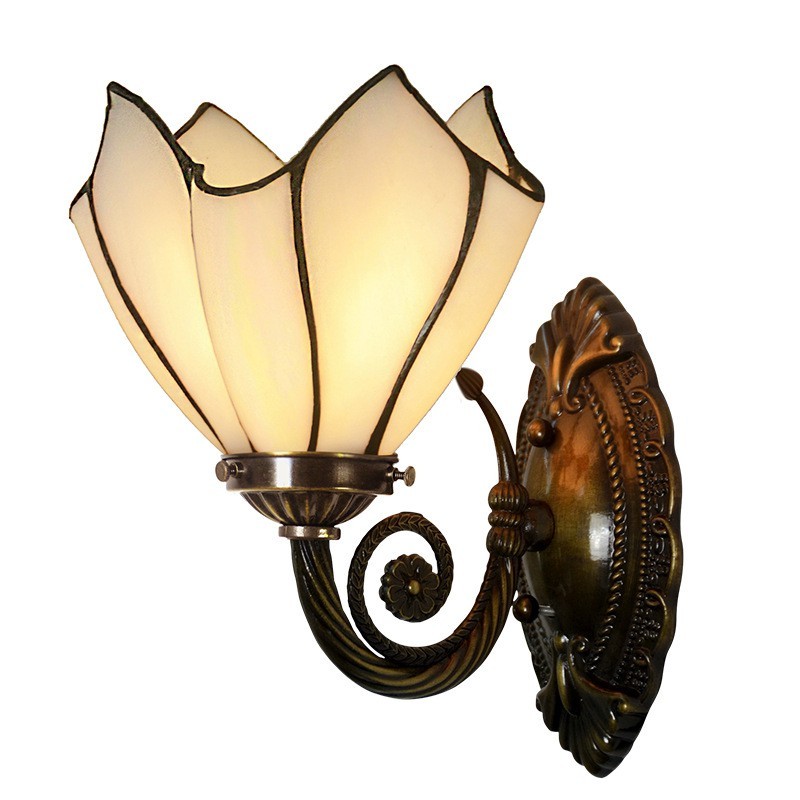Aplique de pared de cristal de colores Tiffany de 1 luz y estilo rural de 18 cm