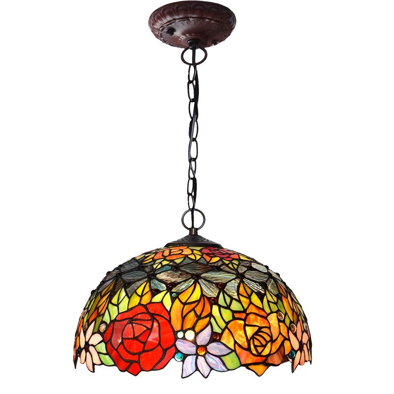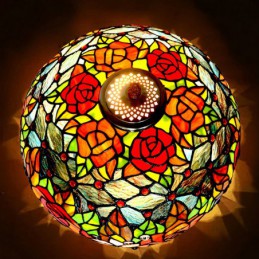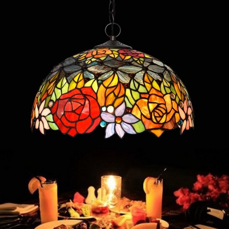 Lámpara colgante de cristal de color Tiffany de 1 luz y 40 cm en color rosa