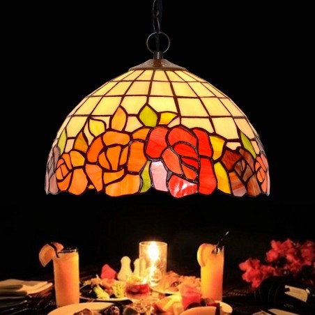 Lámpara de mesa Tiffany de cristal coloreado con forma de rosa roja de 30 cm