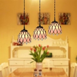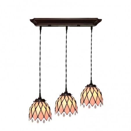 Lámpara colgante de vidrio de color Tiffany barroco de 3 luces