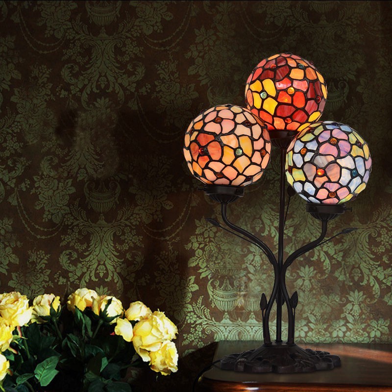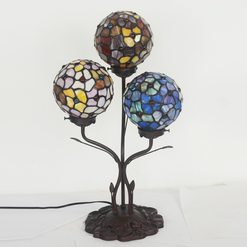 Lámpara de mesa de cristal de color Tiffany de 3 luces de estilo rural