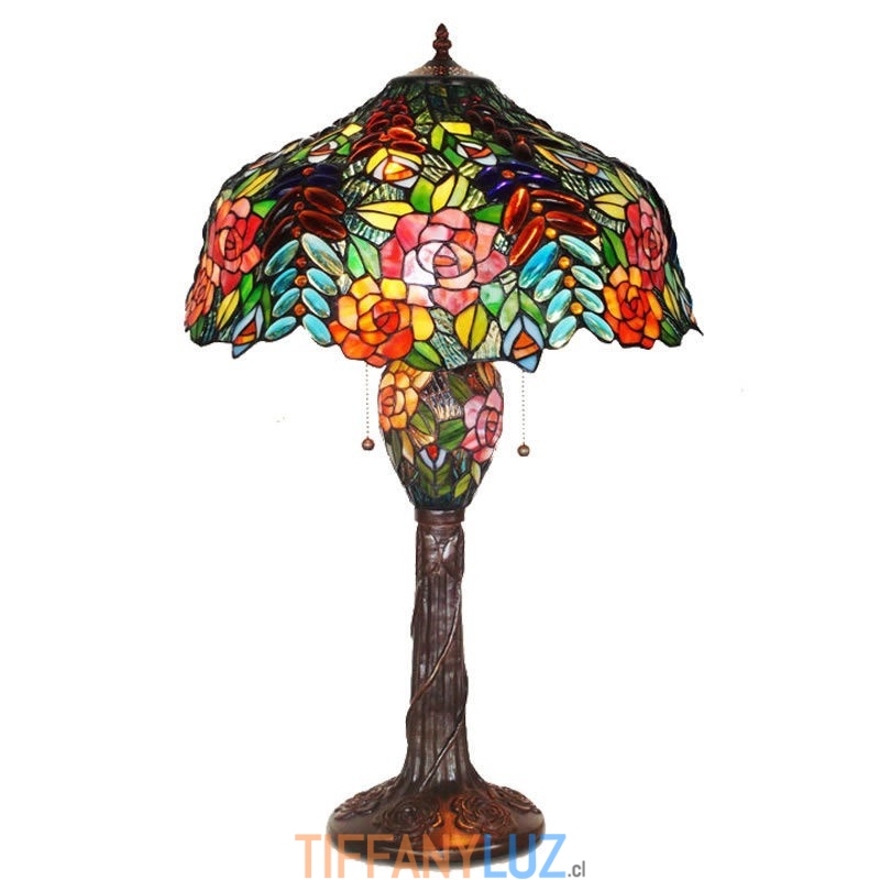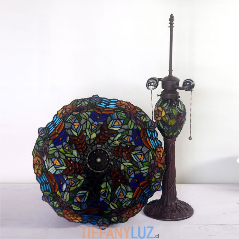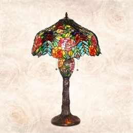 Lámpara de mesa de cristal de color rosa uva de Tiffany de 40 cm