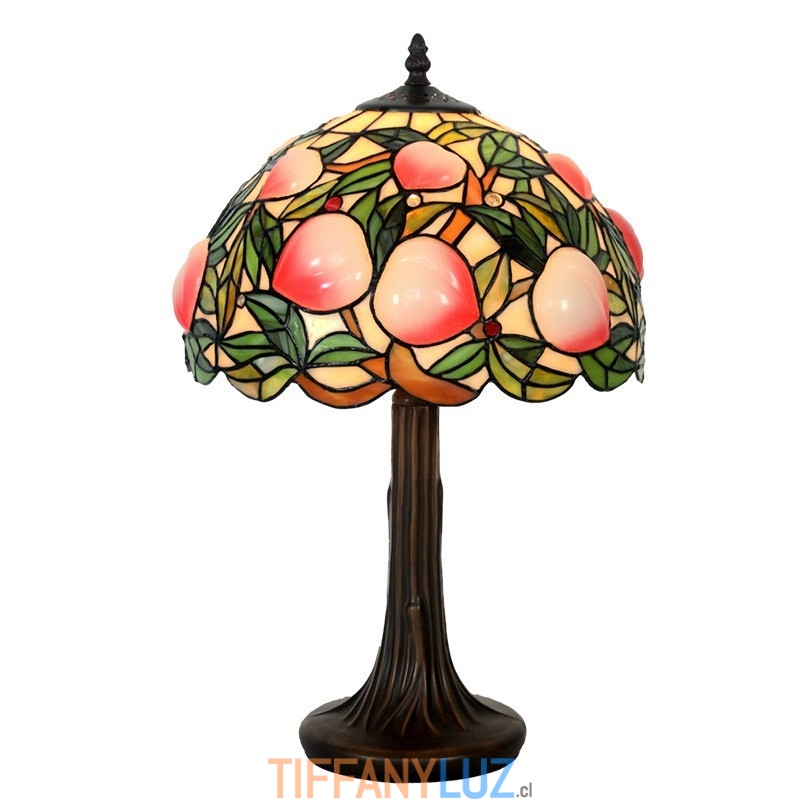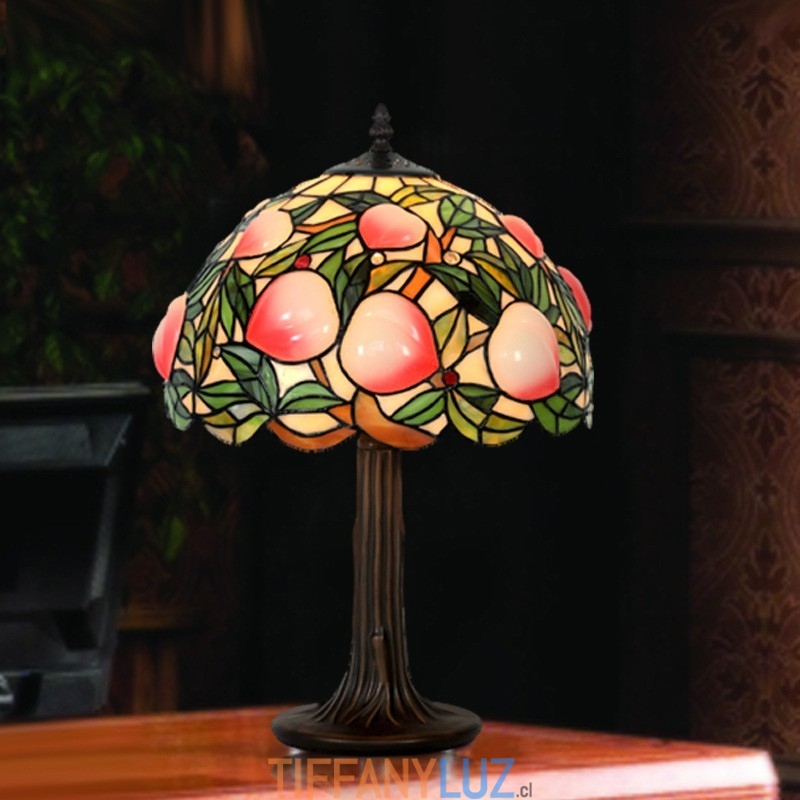 Lámpara de mesa Tiffany de cristal tintado estilo retro color melocotón de 30 cm