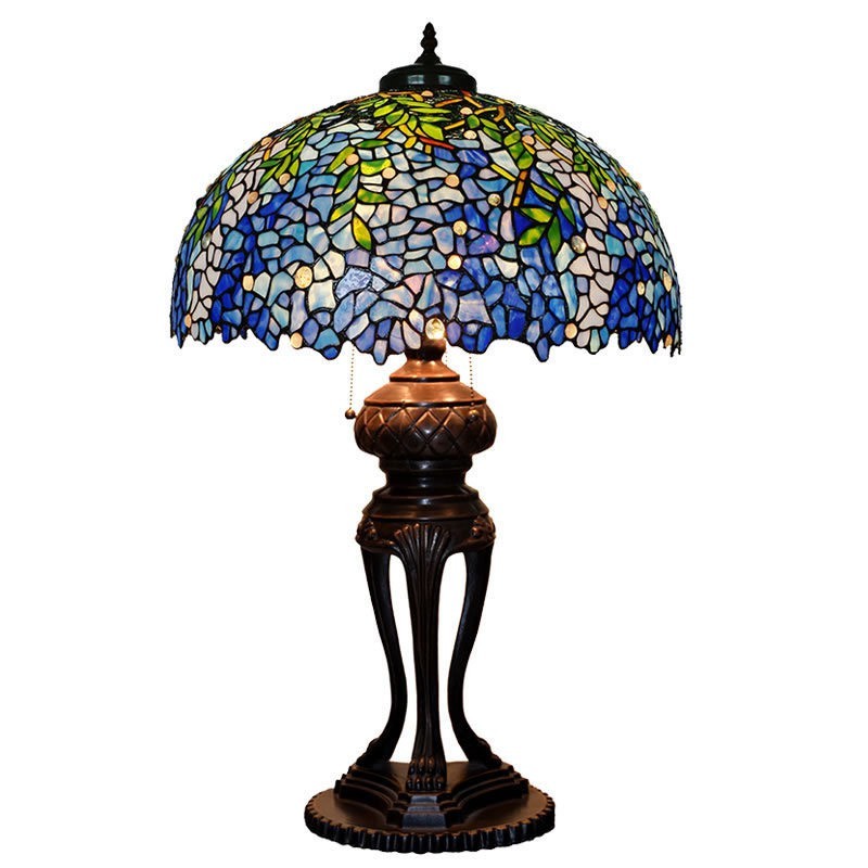 Lámpara de mesa de cristal de color azul Tiffany de 50 cm