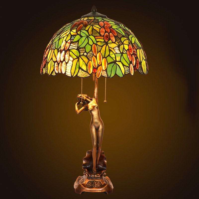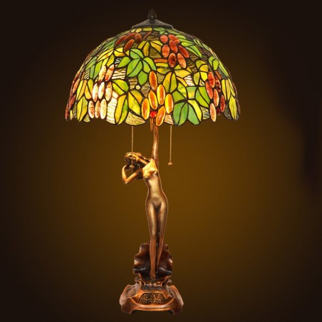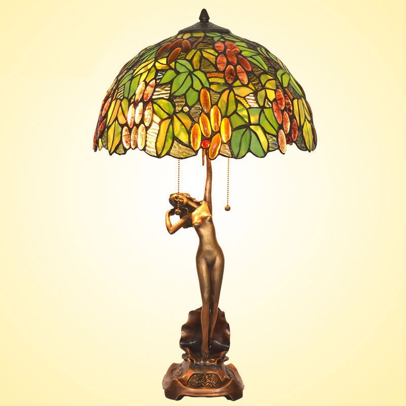 Lámpara de mesa Tiffany de cristal de colores retro en forma de uva de 40 cm