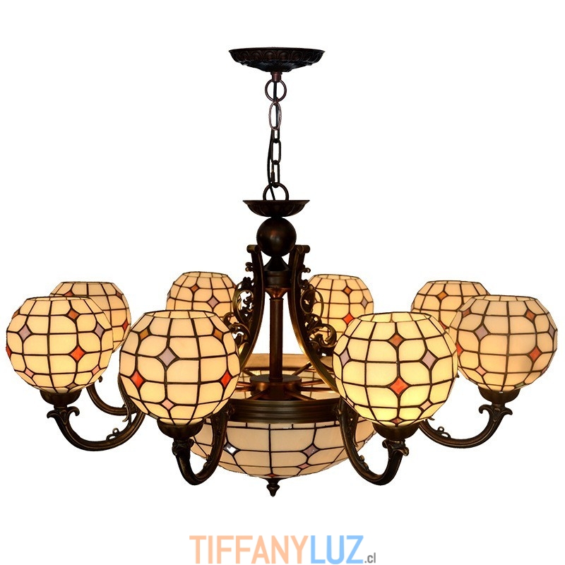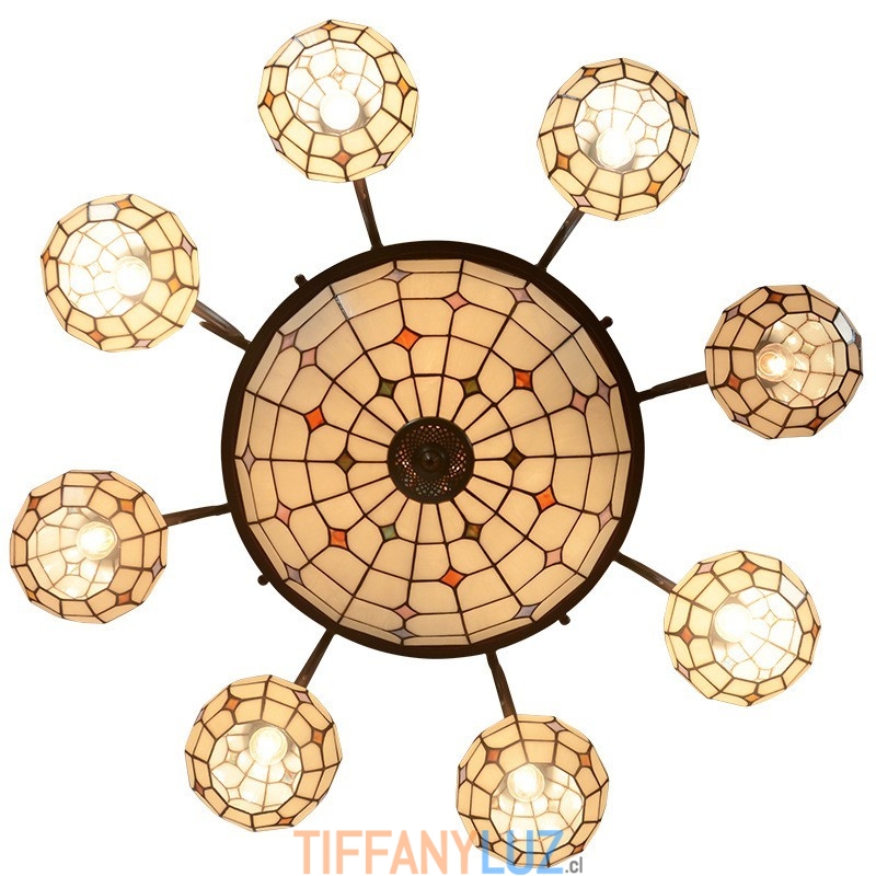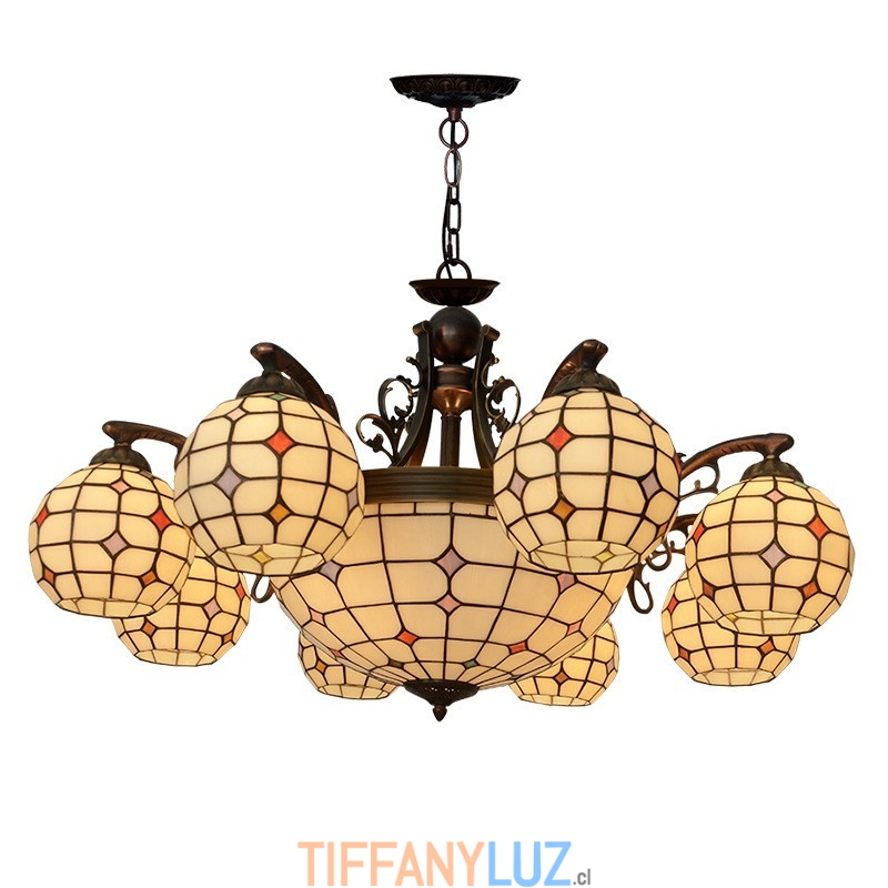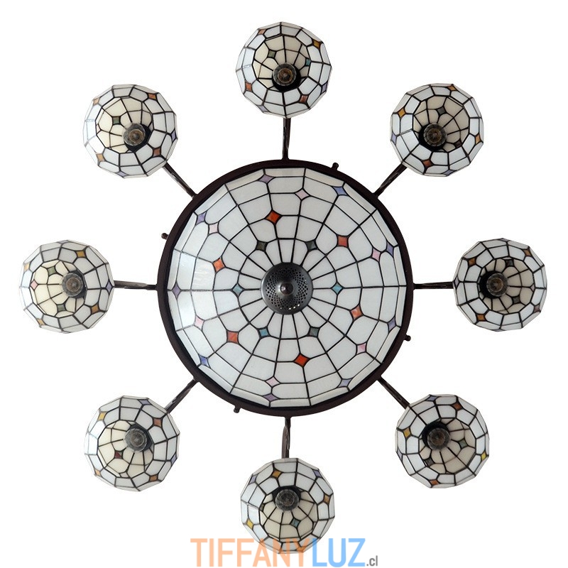 Lámpara de araña de cristal de colores Tiffany de 8+1 luces