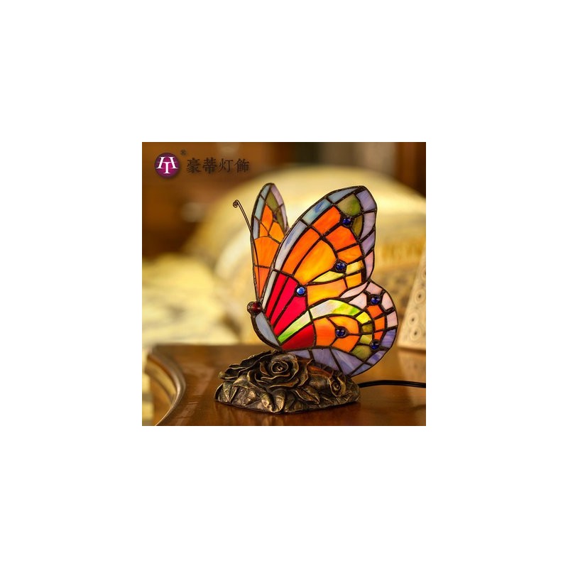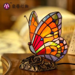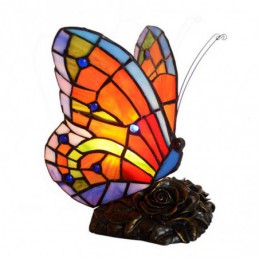 Lámpara de mesa de cristal de colores Tiffany con forma de mariposa