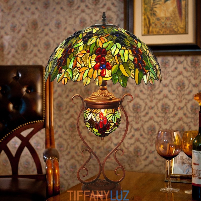 Lámpara de mesa de cristal de color Tiffany en forma de uva de 45 cm
