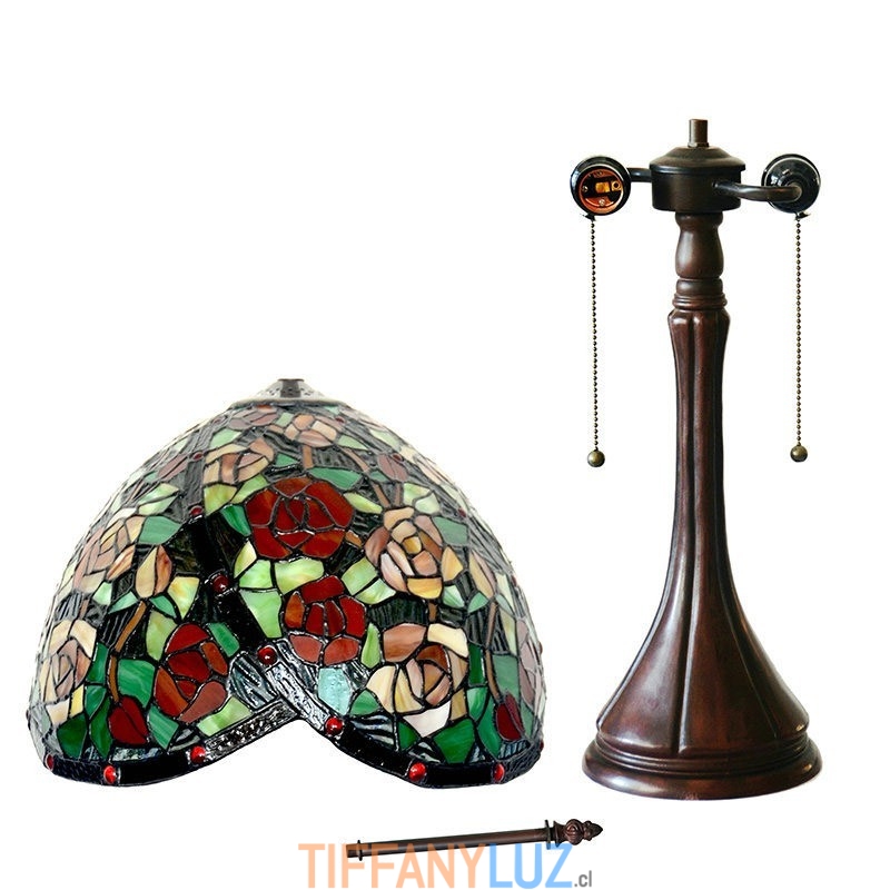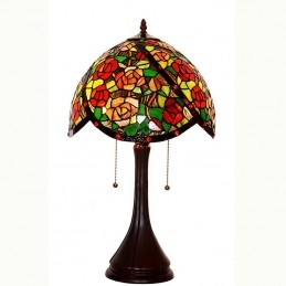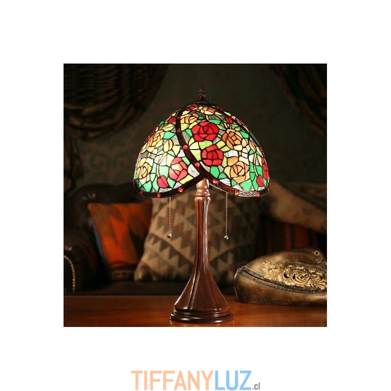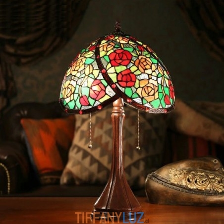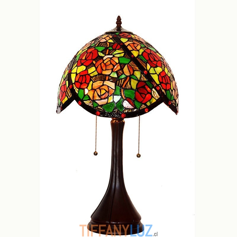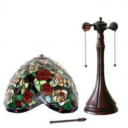 Lámpara de mesa de cristal de color Tiffany en tono rosa de 33 cm