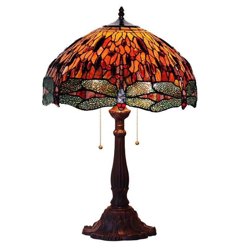 Lámpara de mesa de cristal de color Tiffany con forma de libélula de 45 cm