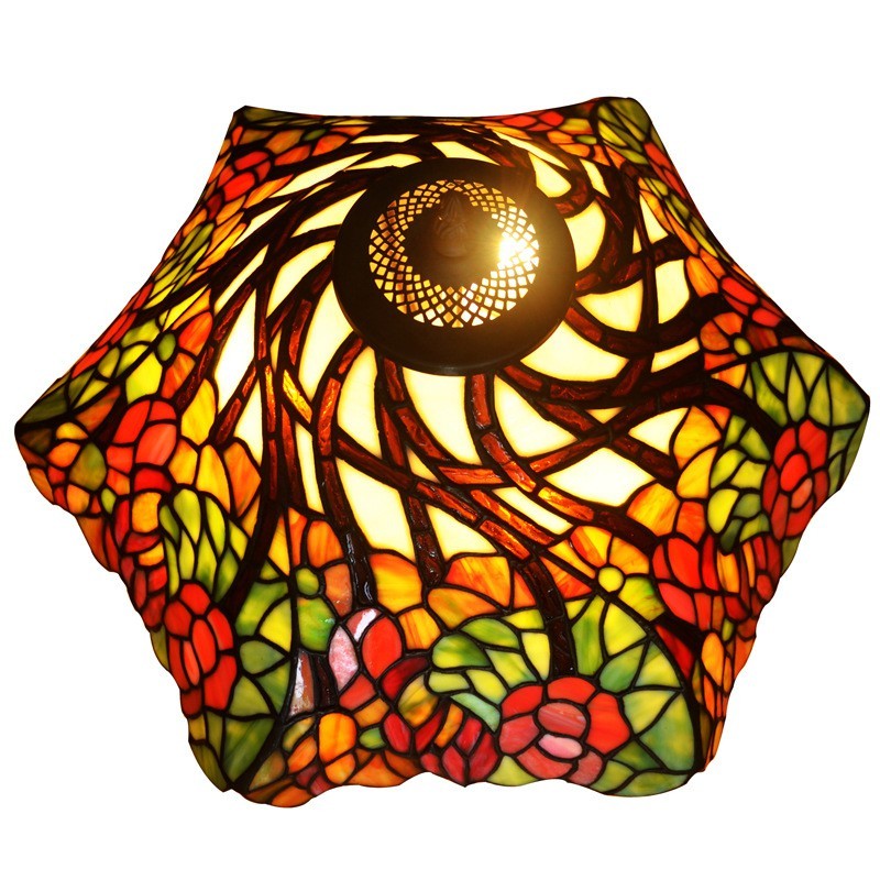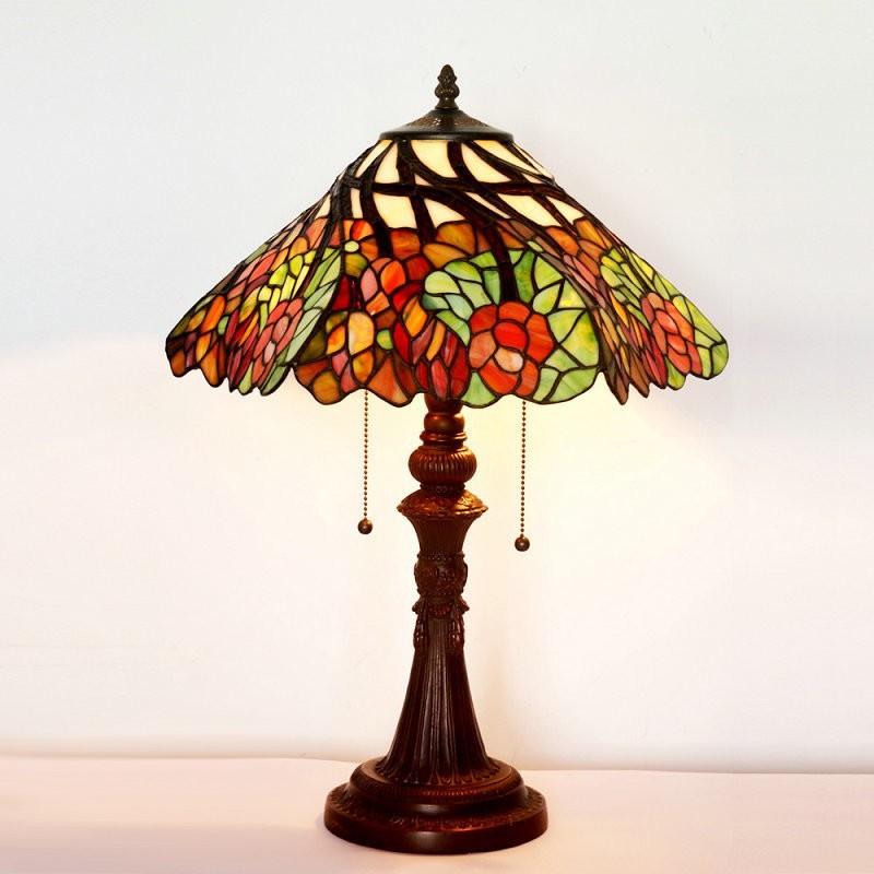 Lámpara de mesa rústica de cristal de colores Tiffany de 40 cm