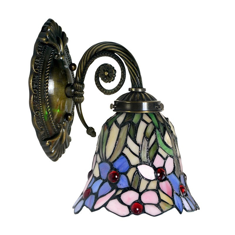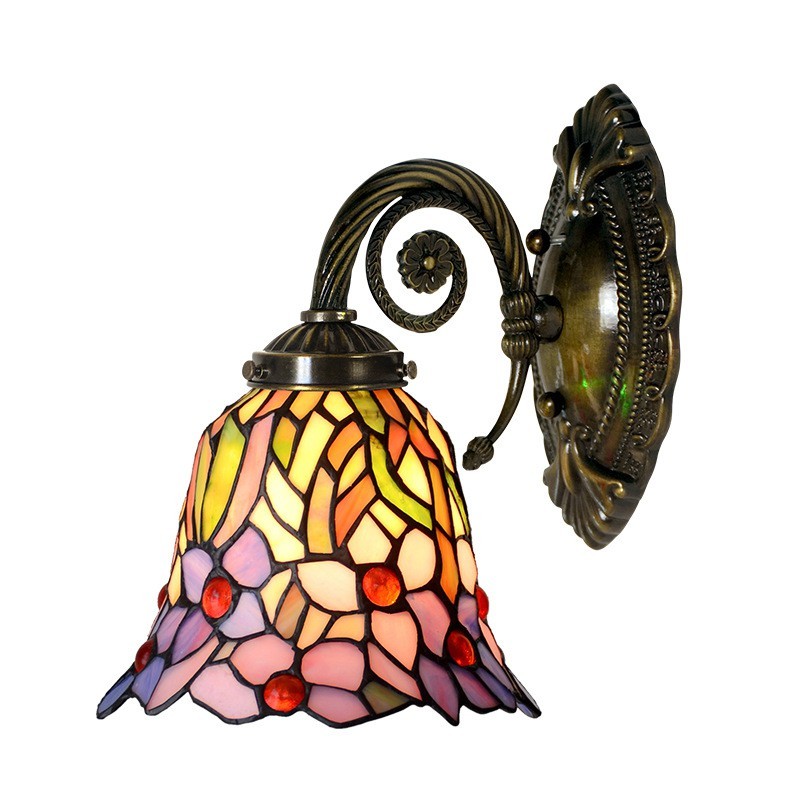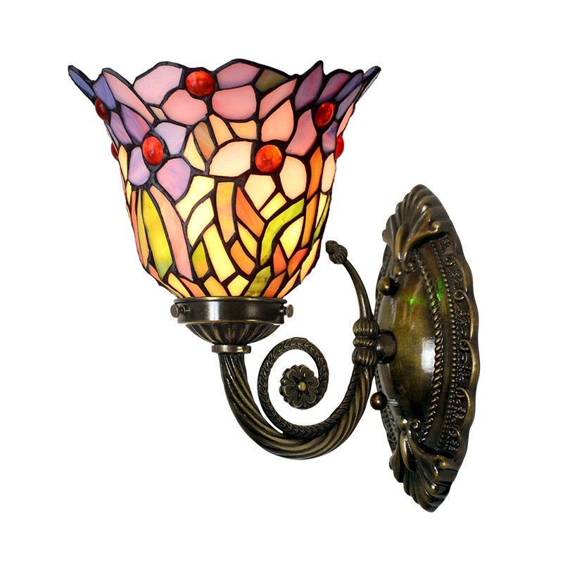 Aplique de pared de cristal de colores Tiffany de 1 luz estilo retro de 18 cm