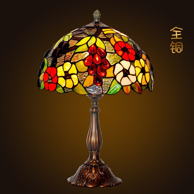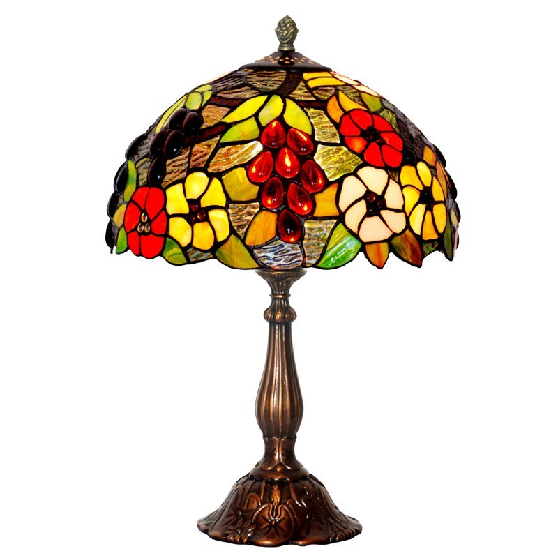 Lámpara de mesa Tiffany de cristal de colores en forma de uva de 30 cm